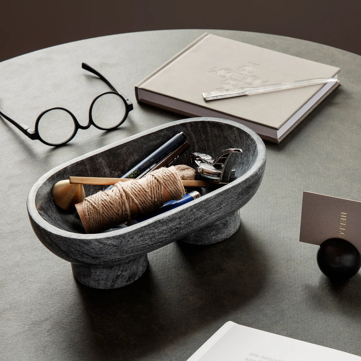 De Alza kom van Ferm Living herinterpreteert de klassieke vorm van de kom. De langwerpige vorm en de twee poten maken van de kom een decoratief accessoire in het woongedeelte.