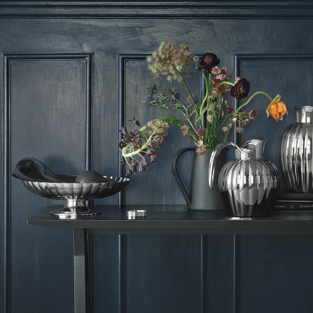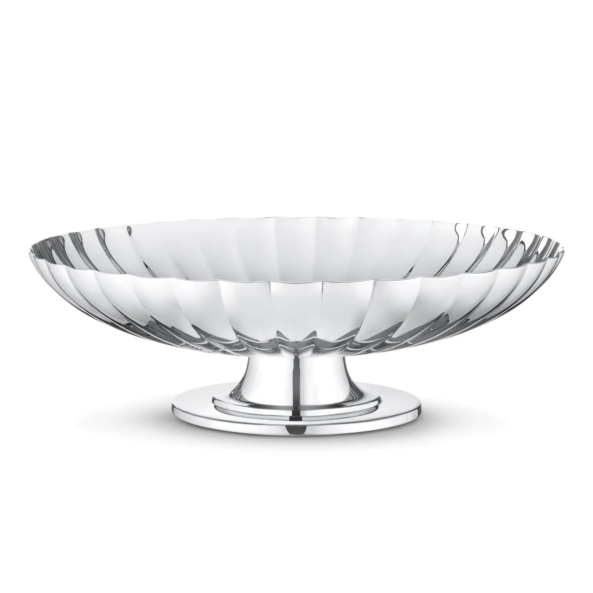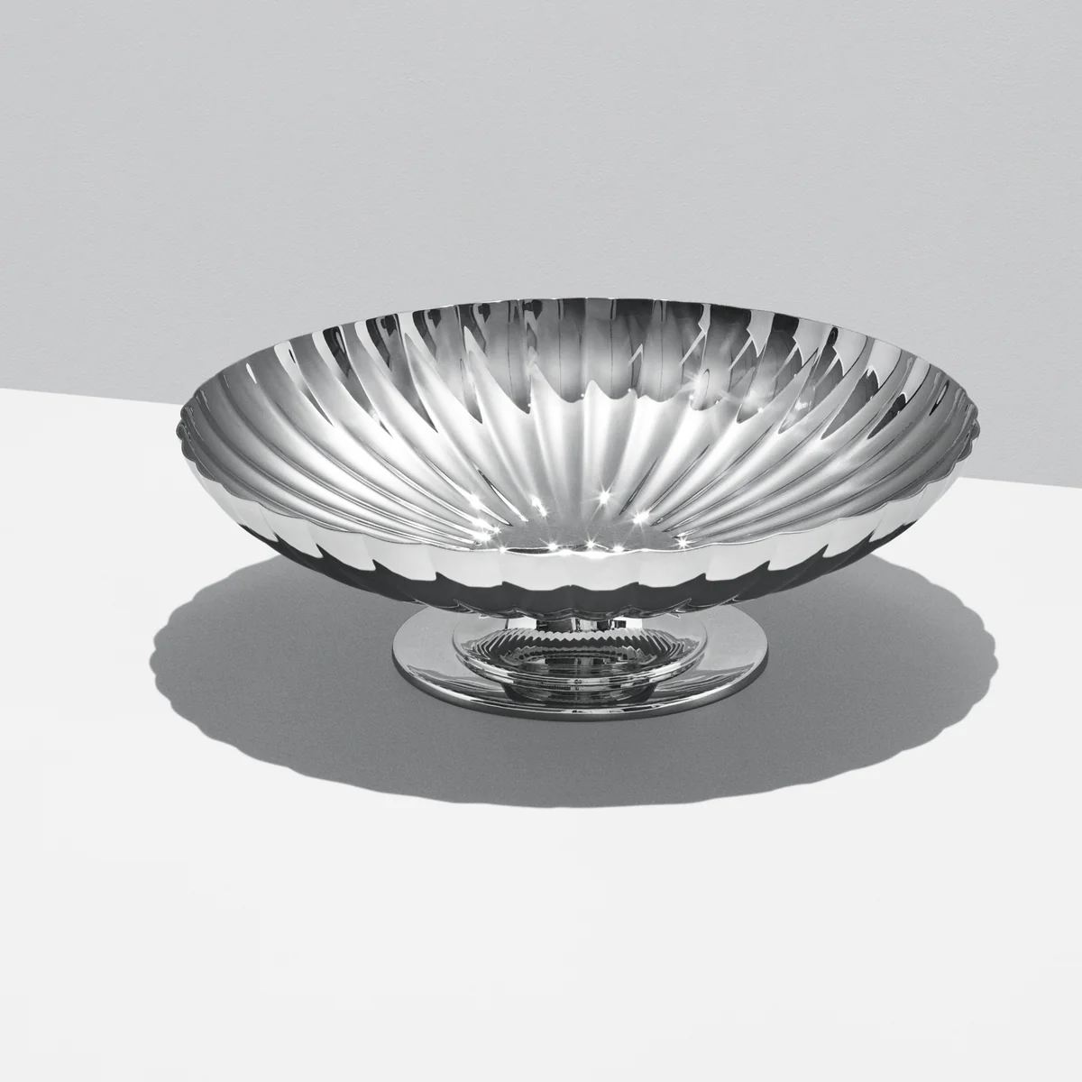 De Zweedse ontwerper Sigvard Bernadotte kwam al in 2002. Jaar voorbij. Het team van Georg Jensen werd geïnspireerd door zijn ideeën en voegde deze succesvolle Bowl-serie toe aan het assortiment. Het hoogglans gepolijste roestvrijstaal heeft een kristalachtig effect doordat de gespen een speciale uitstraling aan het object geven. Decoratieve voorwerpen of vers fruit worden gereflecteerd in de kom met een diameter van 28 cm. Een klassiek ontwerp in tijdloze Scandinavische stijl voor de tafel of als opbergplaats voor kleine, kostbare spullen.