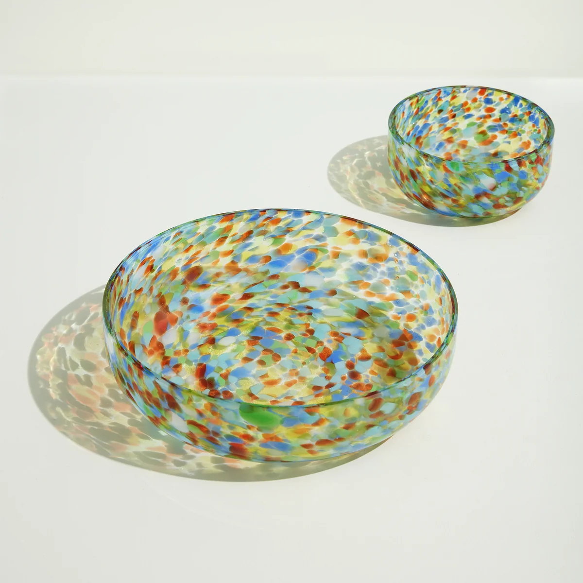 De schaal Confetti van Hüsch Interior doet denken aan een levendige en vrolijke feeststemming, vol confetti en vrolijke herinneringen aan bijzondere feestdagen en de positieve emoties die het samenzijn oproept. Het kleurrijke ontwerp brengt een goed humeur in de woonkamer en creëert, wanneer het licht erop valt, een mooi schaduwspel. De glazen, die verkrijgbaar zijn in een praktische set van 2, zijn niet alleen een decoratief object op zich, maar kunnen ook worden gebruikt als opbergplaats voor allerlei voorwerpen en individueel worden gecombineerd.