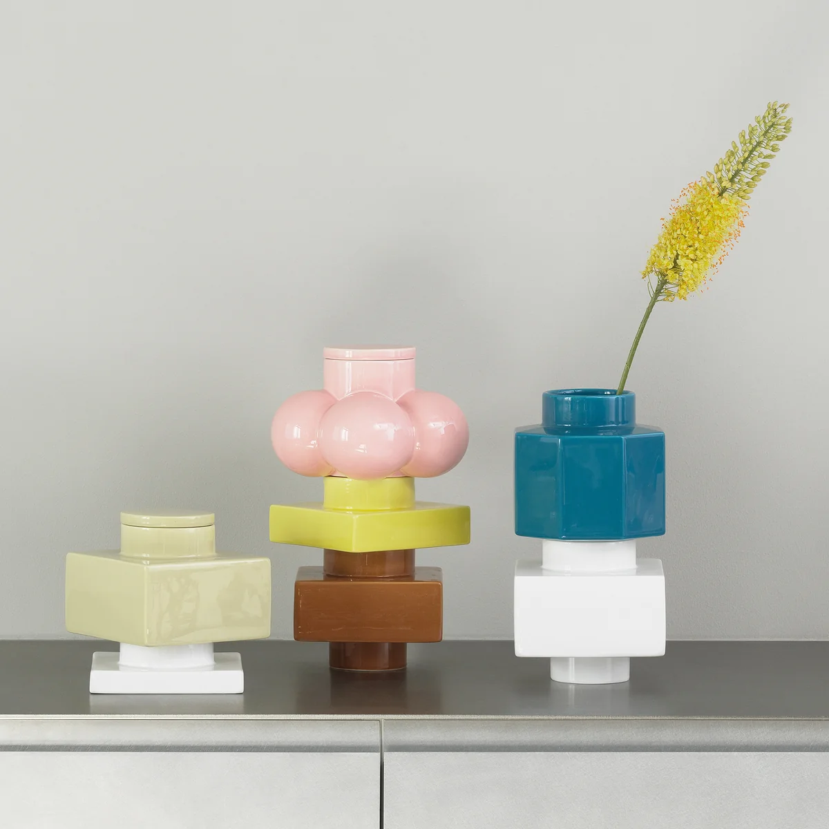 De Deco Objects van Normann Copenhagen , ontworpen door Studio Yolk, zijn harmonieus op elkaar afgestemd en tegelijkertijd expressief.