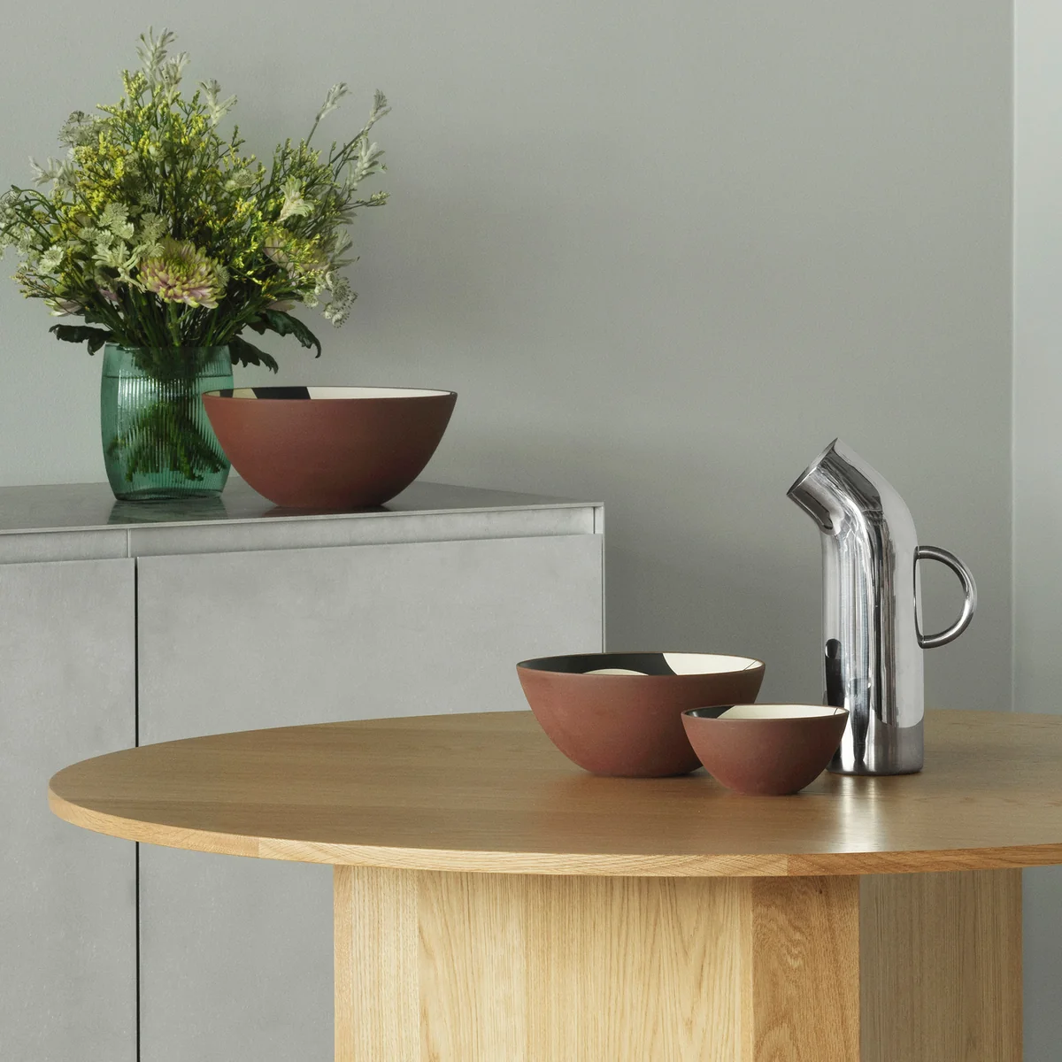 Met de fascinerende patronen van de Line kommen van Normann Copenhagen worden nieuwe accenten op tafel gezet. Deze buitengewone kommen van rode klei zijn versierd met opvallende prints in gedurfd zwart en delicaat crème, waardoor ze het toppunt van elegantie zijn.