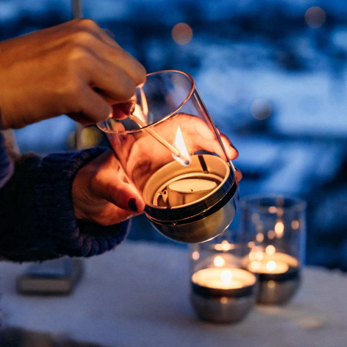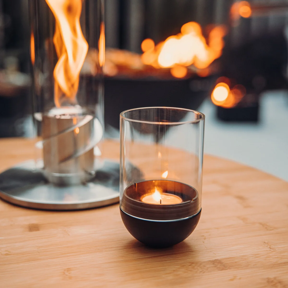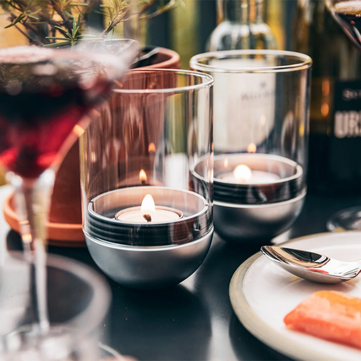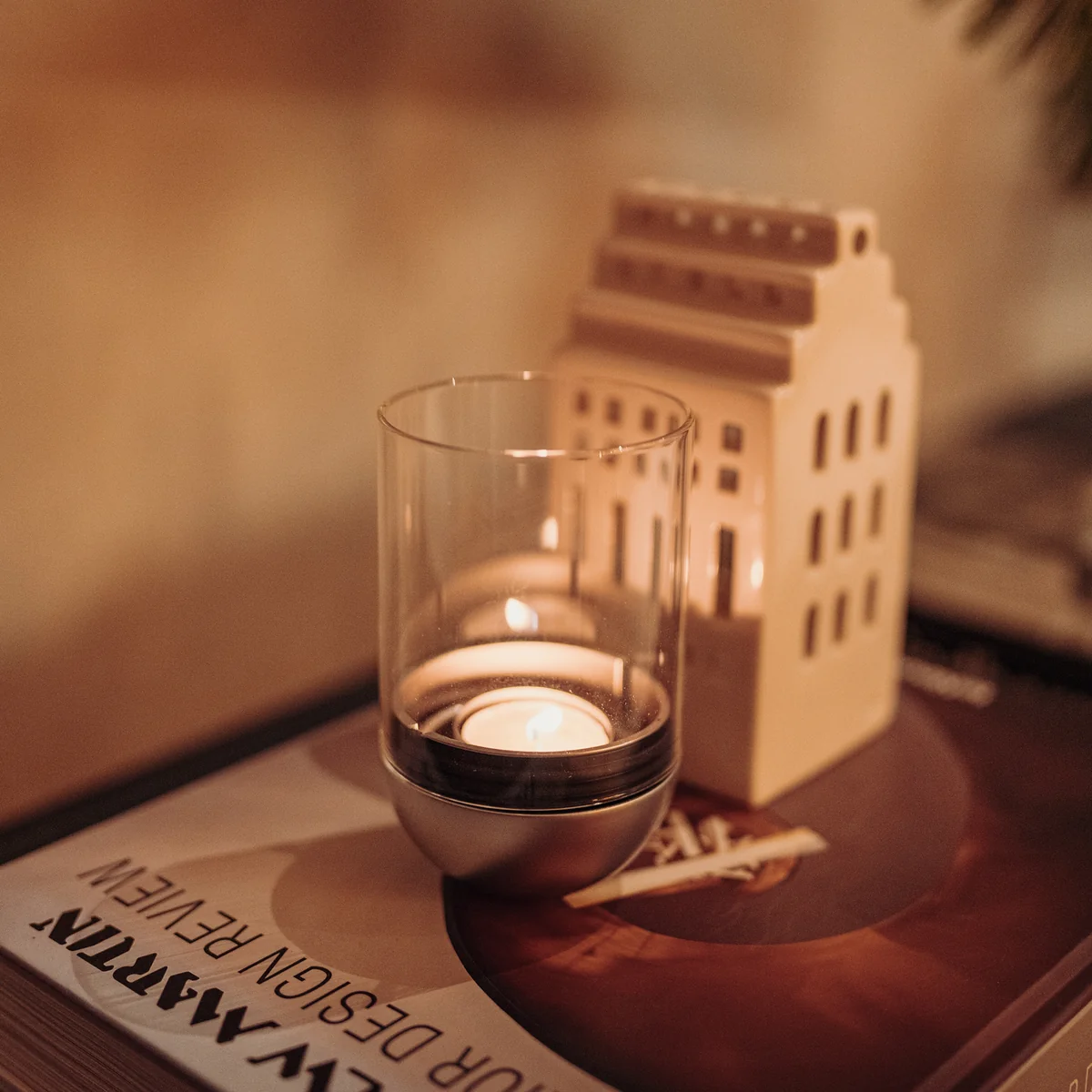 De Gravity kaars van höfats maakt indruk met zijn functionaliteit en esthetiek. De kaars binnenin is voorzien van een cardanische ophanging, wat betekent dat de zwaartekracht de kaars in balans houdt, ongeacht hoe je het glas draait.