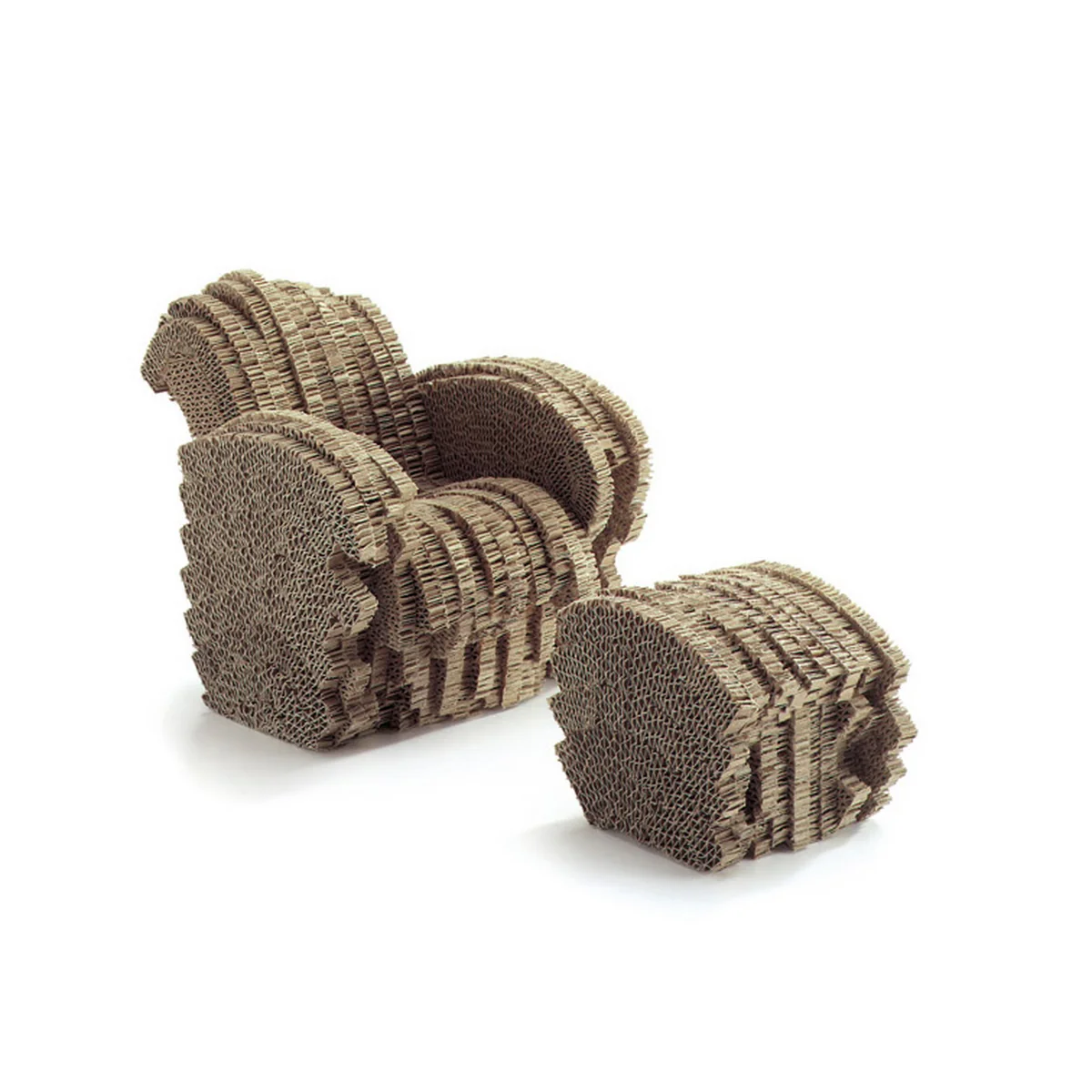 Kartonnen meubelen als goedkoop en licht alternatief voor traditionele meubelen verschijnen al in de jaren zestig van de vorige eeuw. De meeste ontwerpen zijn erop gericht het karton de nodige stabiliteit te geven door middel van inleg- en vouwtechnieken. Gehry koos voor een andere methode, waarbij stevige kartonnen meubelen zoals kartonnen sculpturen zijn ontstaan: "Op een dag kijk ik in mijn kantoor naar een stapel golfkarton, het materiaal dat ik normaal gesproken gebruikte om architectuurmodellen te maken, en ik begon ermee te experimenteren, het aan elkaar te plakken en het in vorm te snijden met een handzaag en een penmes".