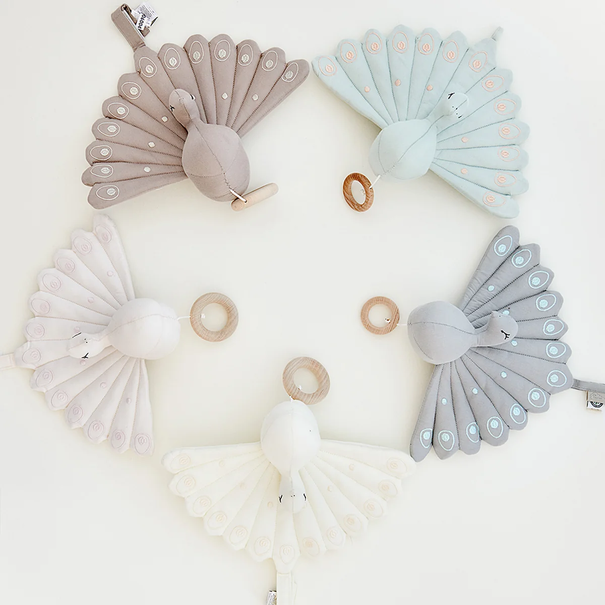Het pauwenmuziekdoosje van Cam Cam Copenhagen laat baby's kijken, lachen en zich verwonderen. Het muziekdoosje laat baby's ogen oplichten: Overdag zorgt het pauwenmuziekdoosje voor speelplezier en 's avonds is het een trouwe hulp om in slaap te vallen. De zachte kleuren en de interessante structuren trekken de aandacht van de baby en laten veel ruimte voor fantasie en creativiteit. De "Lullaby" melodie wekt de baby's zintuigen en kan desgewenst worden uitgezet. Het muziekdoosje kan gemakkelijk boven het bedje of de luiertafel worden gehangen en is een prachtig cadeau.