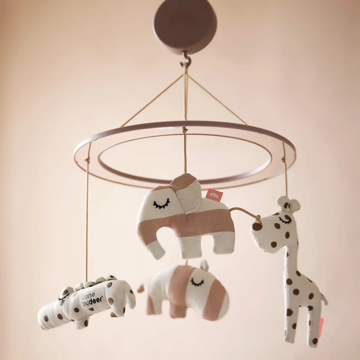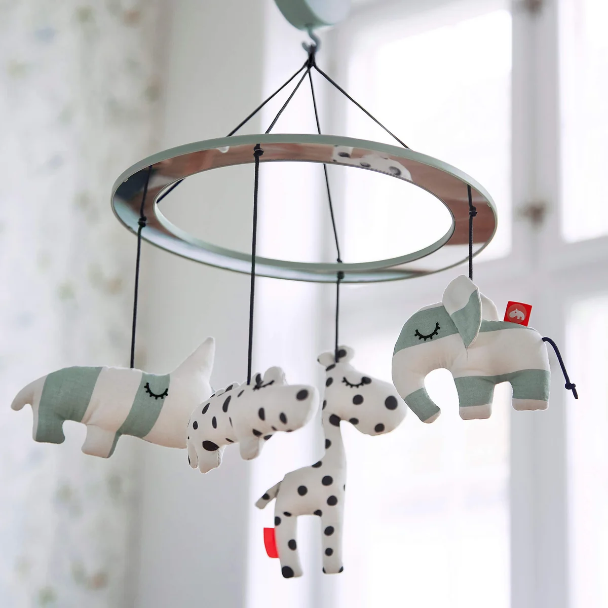 De muziekmobiel met spiegel van Done by Deer kalmeert de kleintjes op een muzikale manier, helpt ze in slaap te vallen en zorgt tegelijkertijd voor plezier en spelletjes met de spiegelreflecties. Het eenvoudige, monochrome ontwerp oogt niet rommelig en trekt de aandacht van baby's en peuters. Croco, Elphee, Raffi en Nozo stimuleren de zintuigen met hun contrasterende patronen en bevorderen zo de ontwikkeling van baby's.