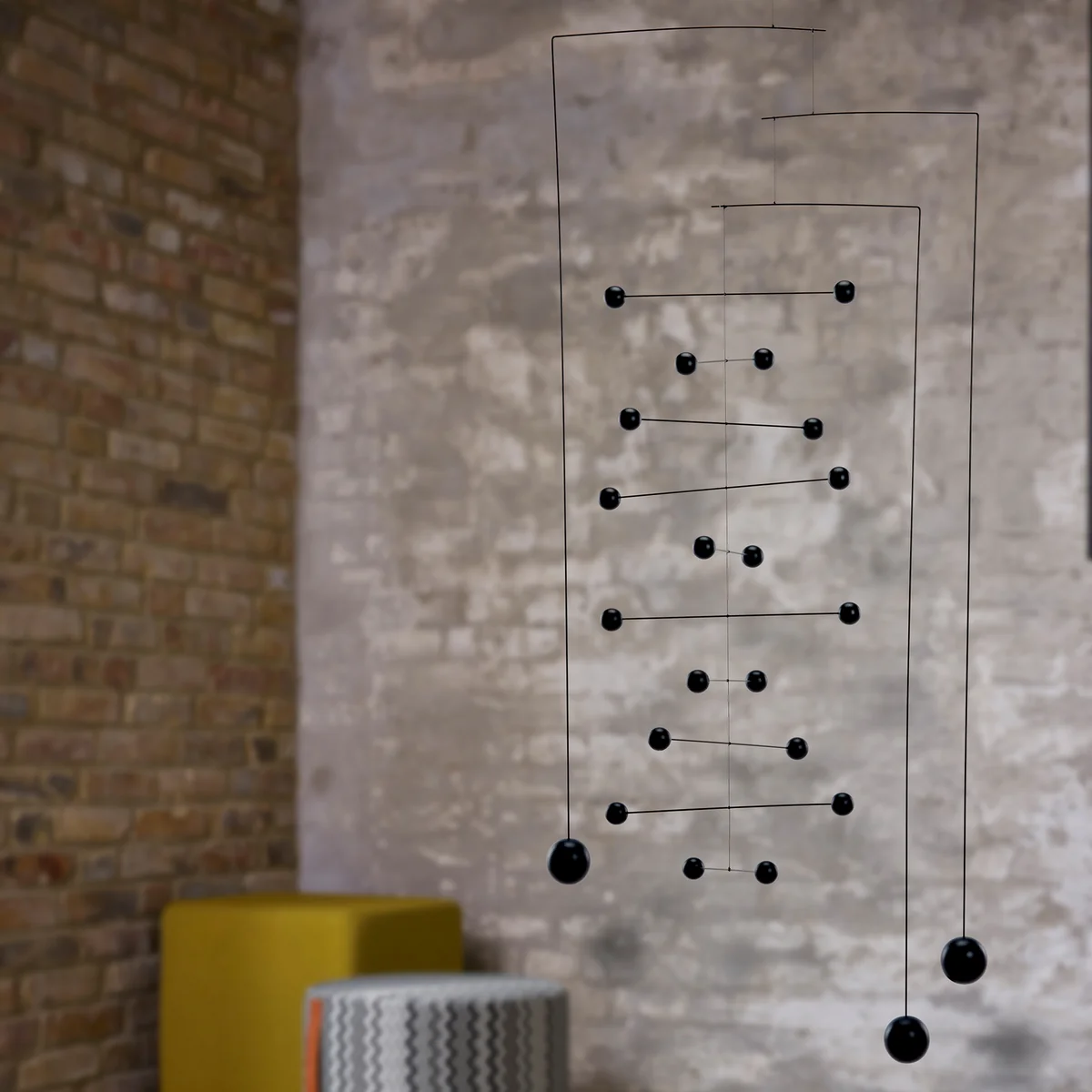 De Kontrapunkt Mobile is verkrijgbaar in twee versies - met zwarte of natuurkleurige houten ballen.