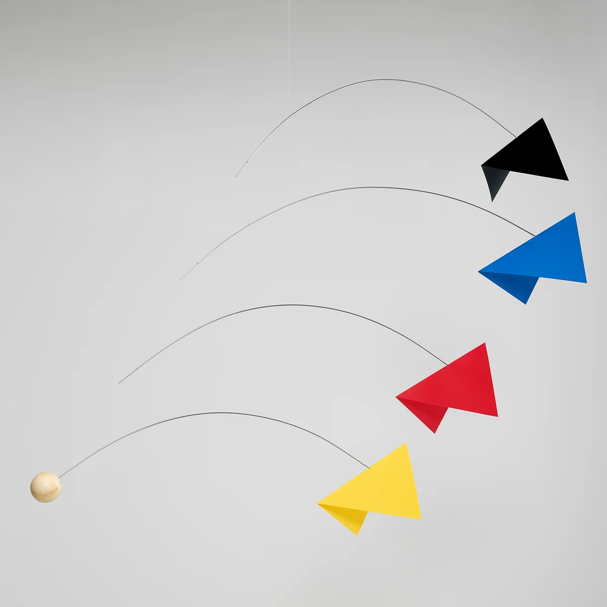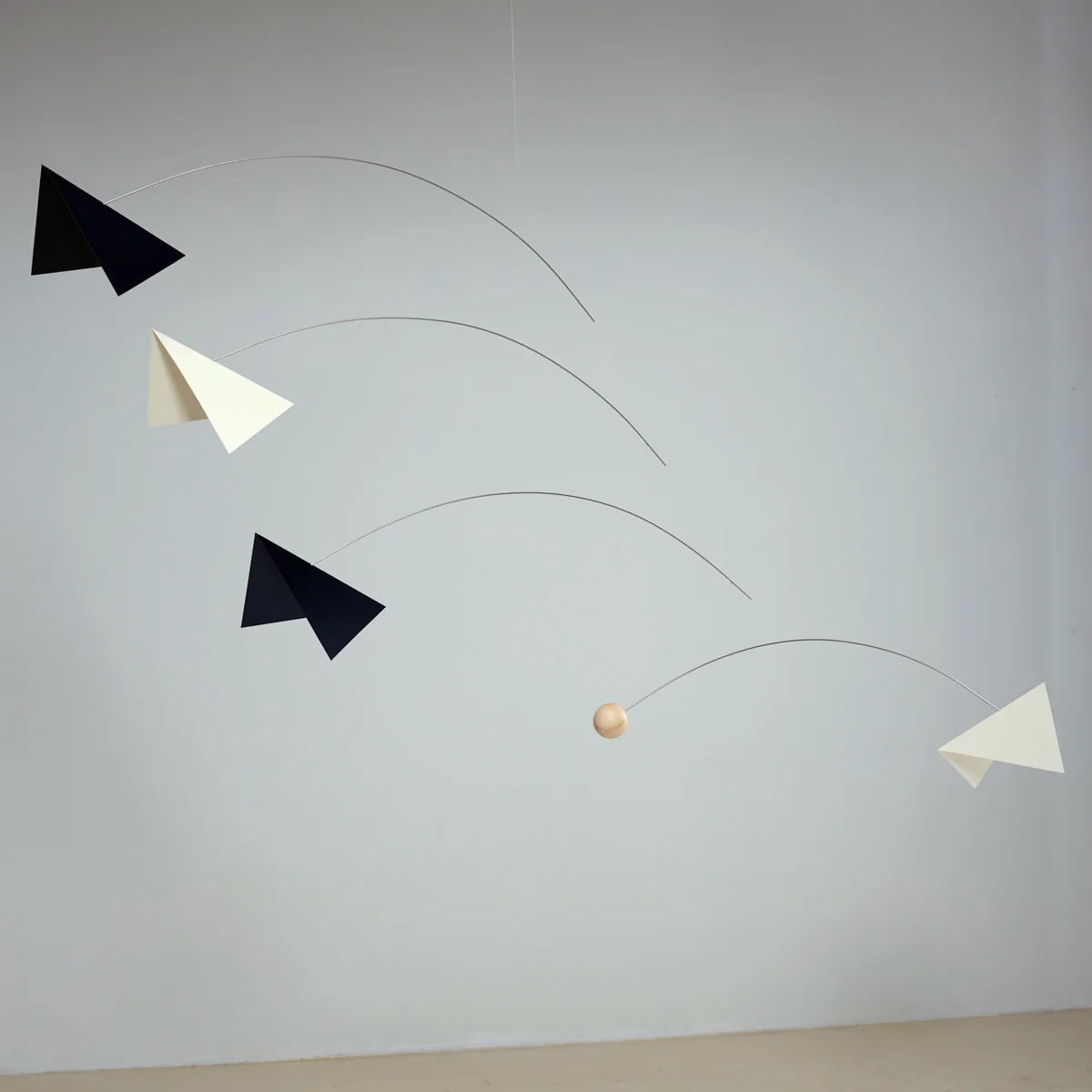 De bogen kunnen vrij met elkaar worden gedraaid. Dit betekent dat de tijdloze mobiel nooit in dezelfde positie is, maar de wind volgt...