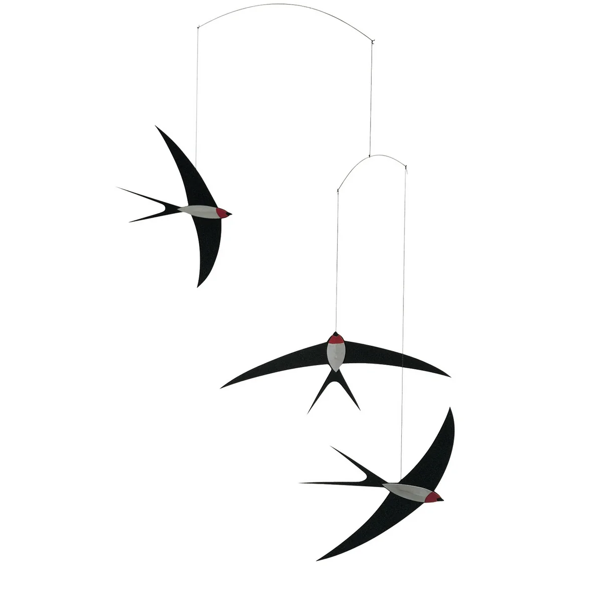 De elegante en acrobatische zwaluwvlucht is nu beschikbaar als mobiel: Flensted Mobiles brengt de vogeltjes naar de kinderkamer met de Swallow mobile.