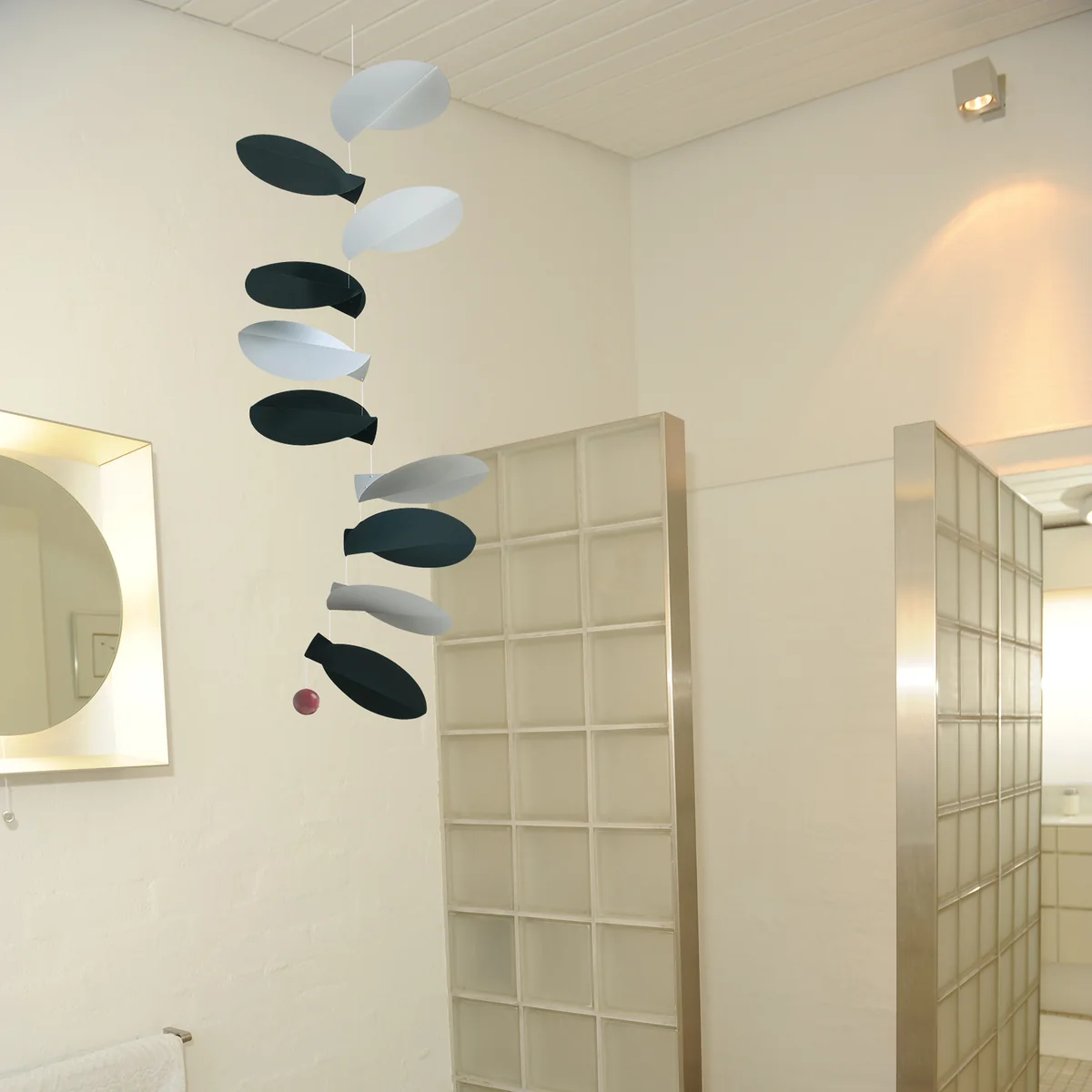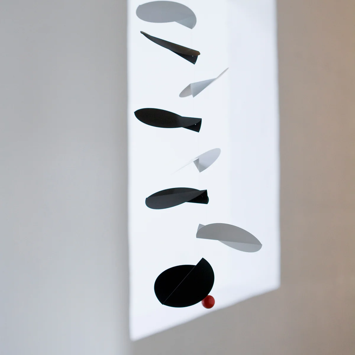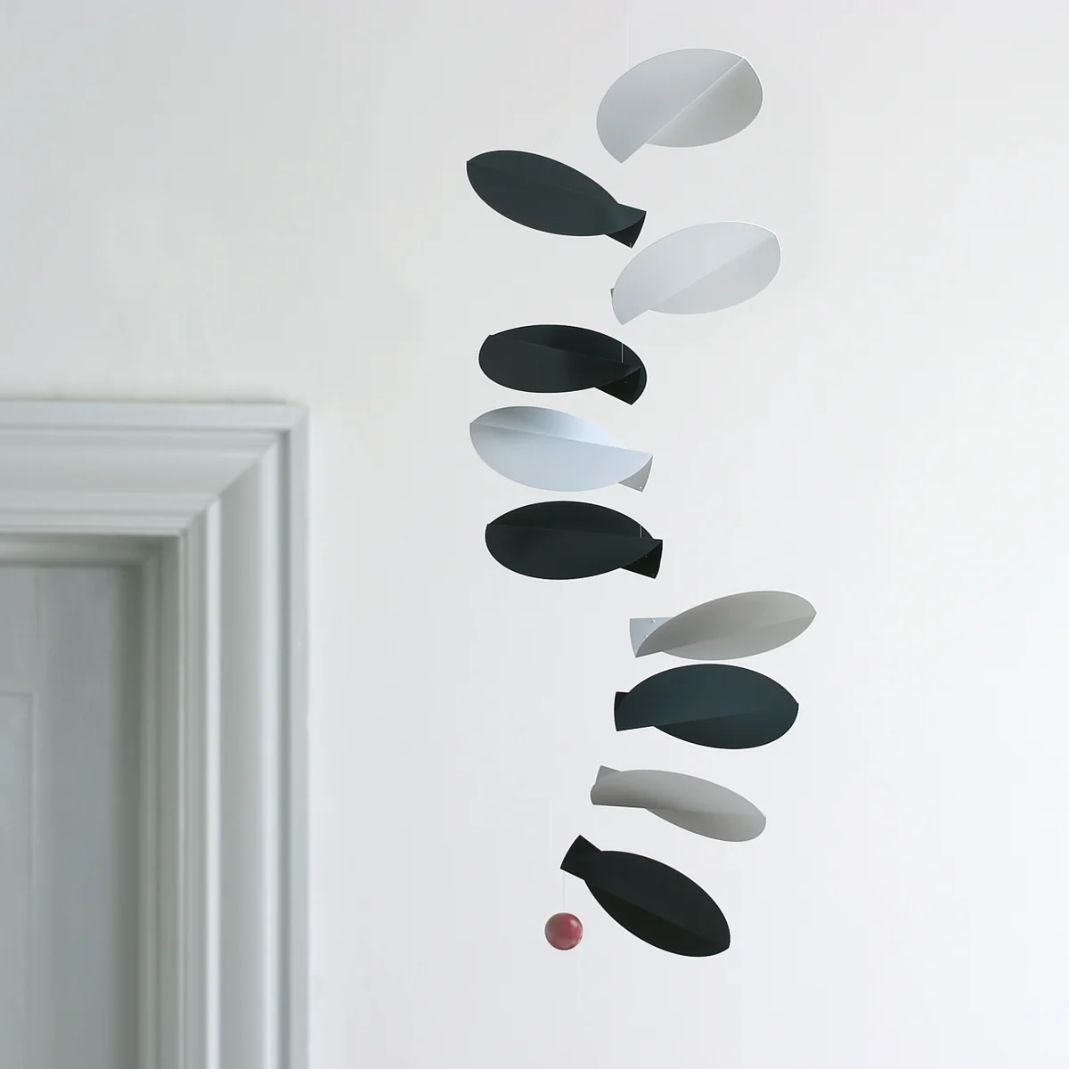 De Turning Leaves mobiel van de Deense fabrikant Flensted Mobiles is een prachtige blikvanger met zijn dynamische, abstracte bladeren! De mobiel komt het best tot zijn recht met een afstand van 20-30 cm tot muren. De afzonderlijke bladelementen kunnen gemakkelijk naar boven of naar beneden op het koord worden geplaatst. In groepjes van 2-3-4 of volgens uw persoonlijke voorkeur. De mobiel zorgt voor een ontspannen, rustig moment Turning Leaves vooral in de buurt van een raam.