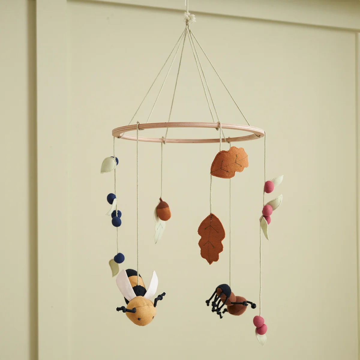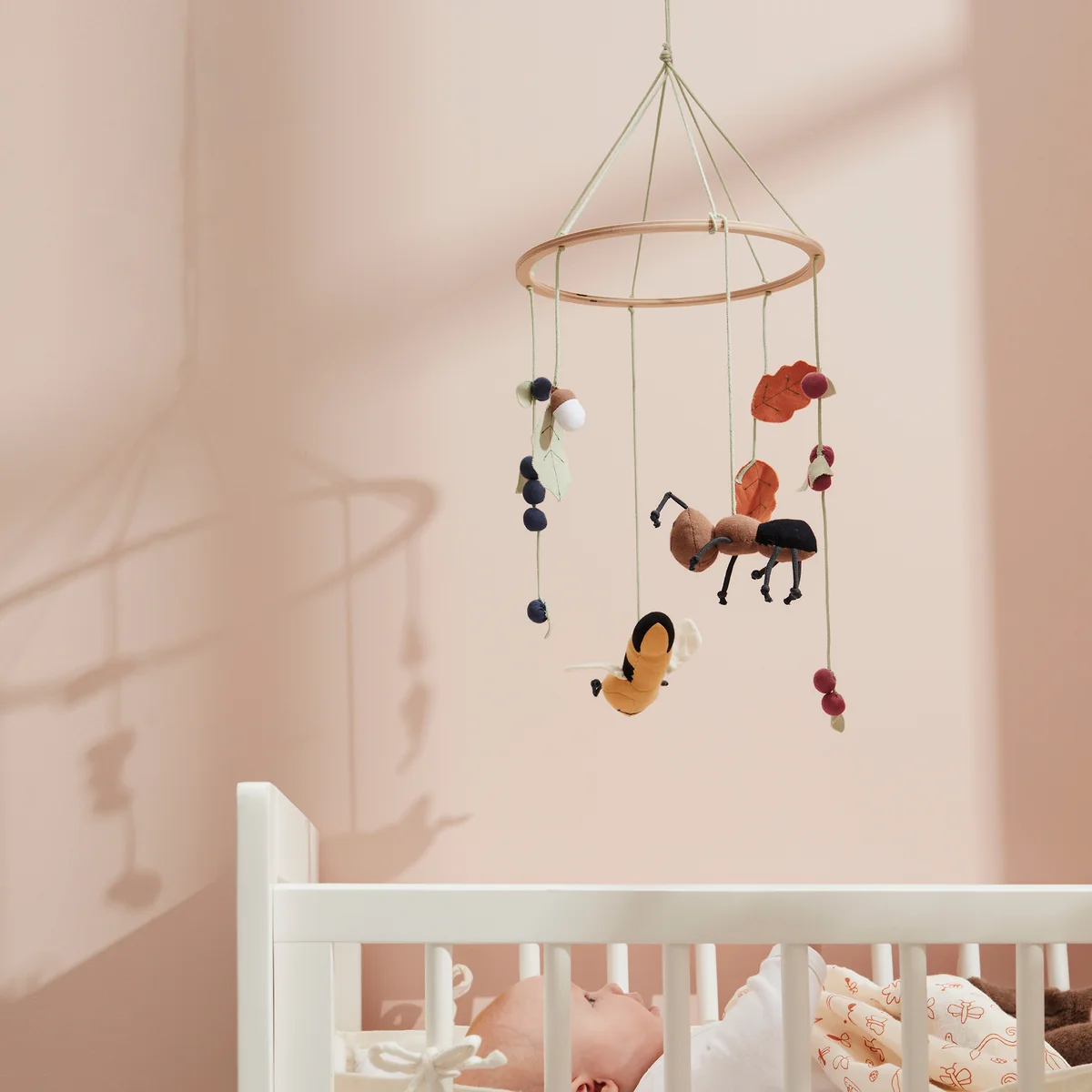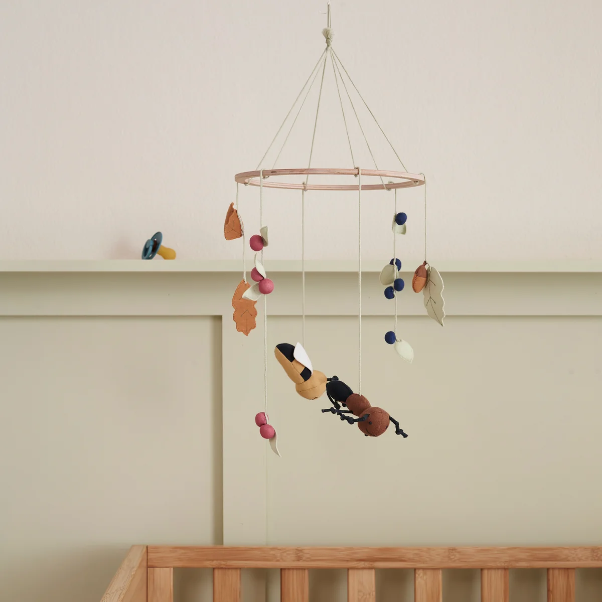 De Edvin mobiel van Kids Concept is een charmant houten accessoire met textiele figuren geïnspireerd op het Zweedse bos. Perfect voor nieuwsgierige baby's die iets nodig hebben om naar te kijken, naast de commode of boven het bedje.