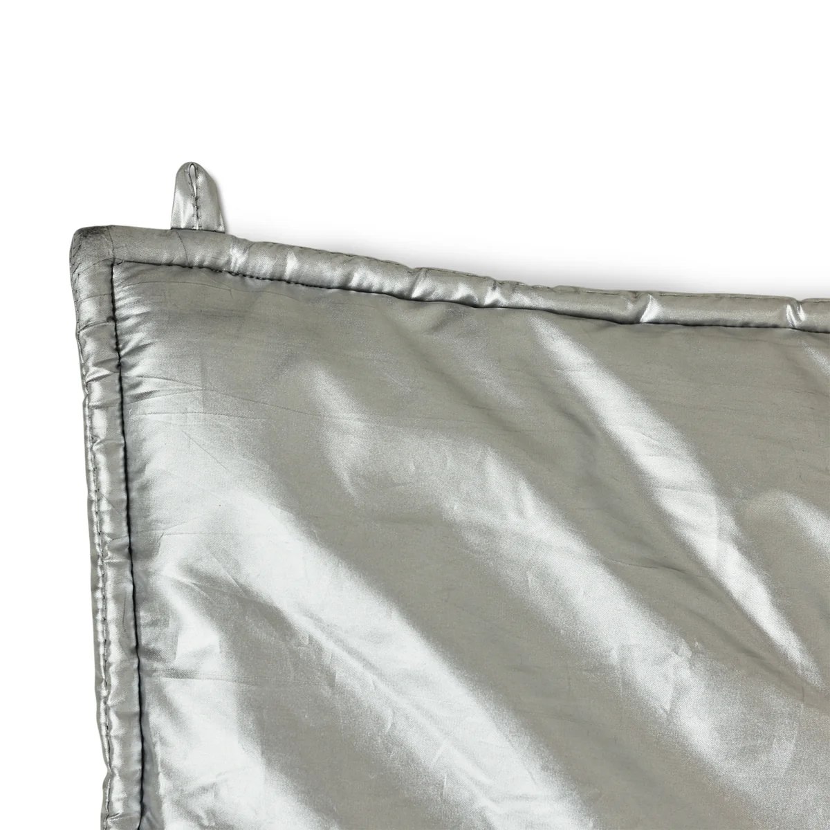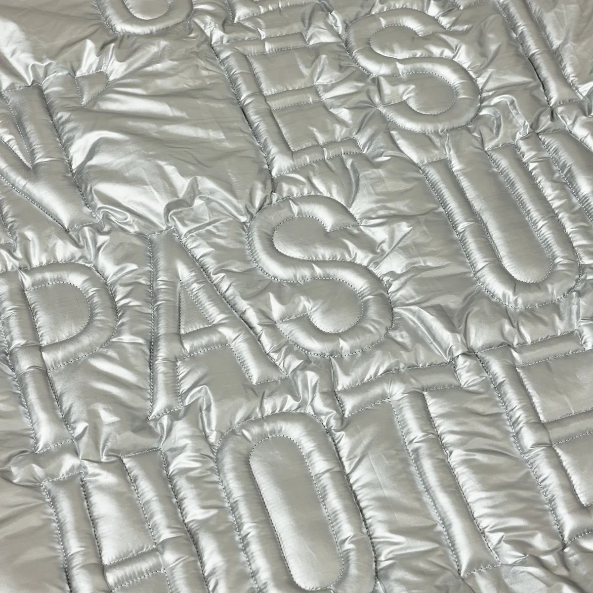 Wanddecoratie van gewatteerd textiel in industrieel zilver