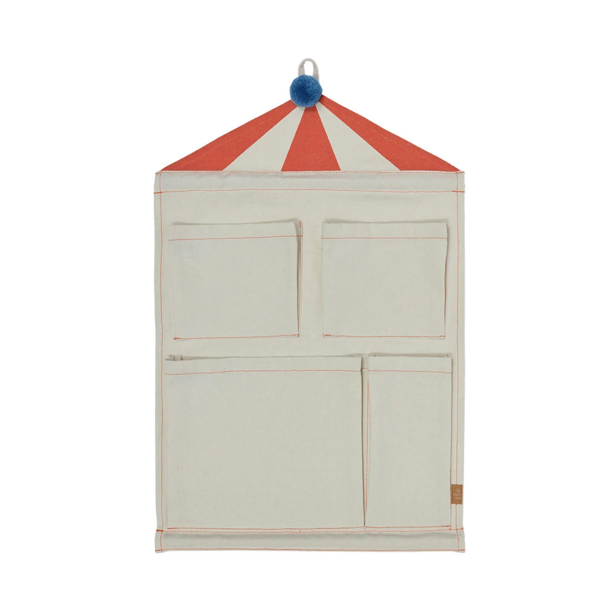 Circus Wandopbergers bieden een decoratieve manier om orde op de muur te scheppen. De textiele wandopberger heeft een grafisch ontwerp en doet denken aan de vrolijke esthetiek van een circustent. Uitgerust met verschillende vakken is het ideaal voor het opbergen van boeken, speelgoed of andere alledaagse voorwerpen. De wandbevestiging maakt ruimtebesparend en flexibel gebruik mogelijk in kinderkamers, gangen of woonkamers. Functie en design harmoniëren hier perfect.