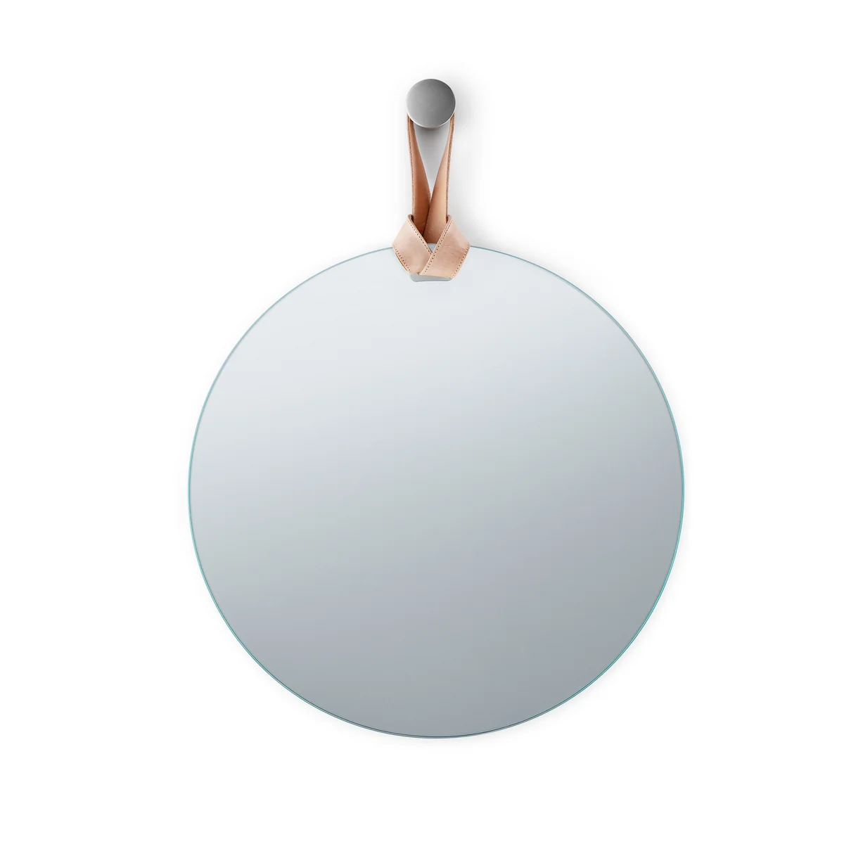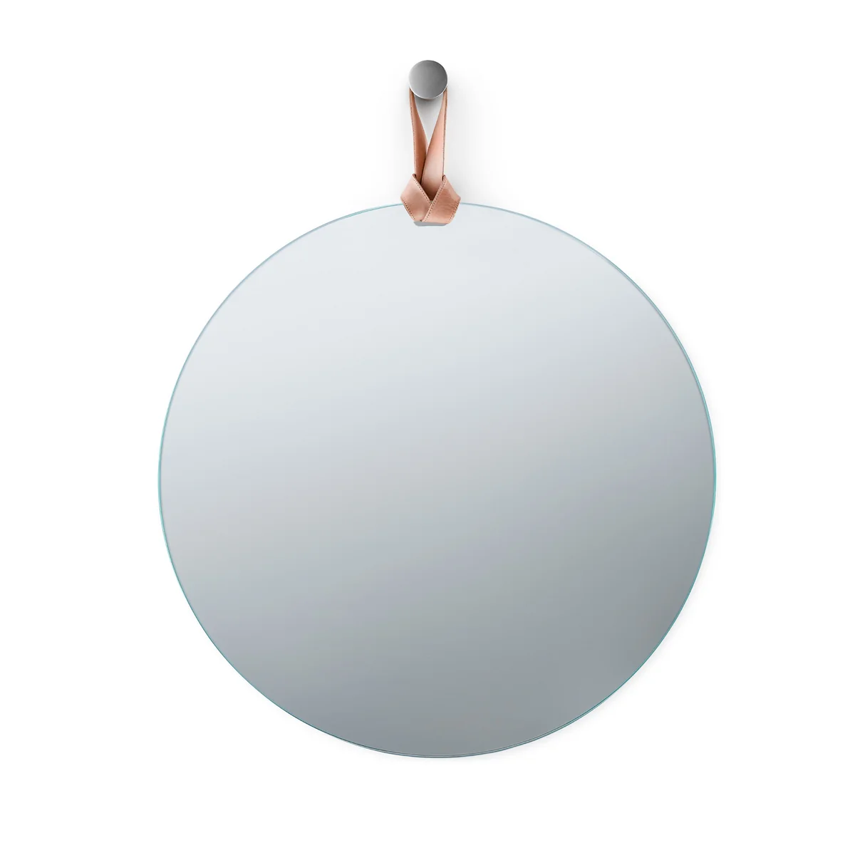 De Touwmuurspiegel van Eva Solo is een ronde spiegel met decoratieve details die goed past bij verschillende sferen. De spiegel bestaat uit rond gepolijst spiegelglas en een decoratieve ophanging van kernleer. De sterke lederen band is een expressief detail dat gebruikt kan worden om de spiegel overal op te hangen.
