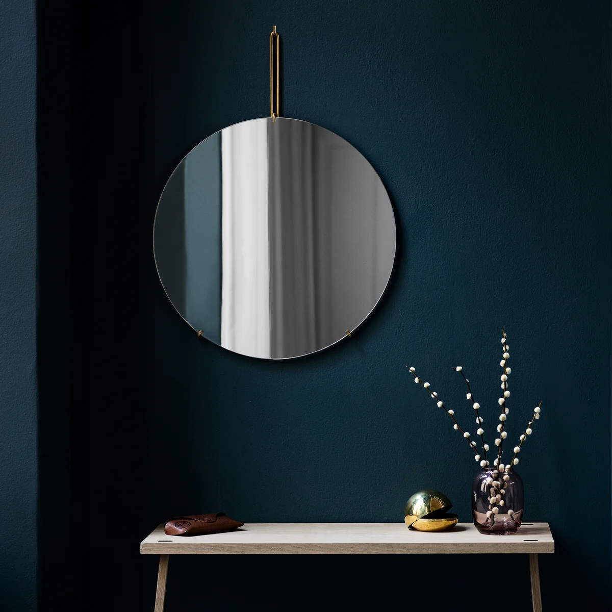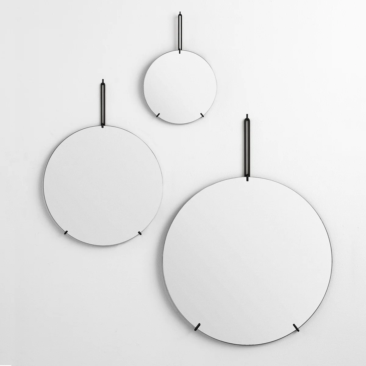 De ronde wandspiegel van Moebe is verkrijgbaar in verschillende maten en framekleuren en kan worden gecombineerd en gecombineerd tot een artistieke installatie aan de muur.