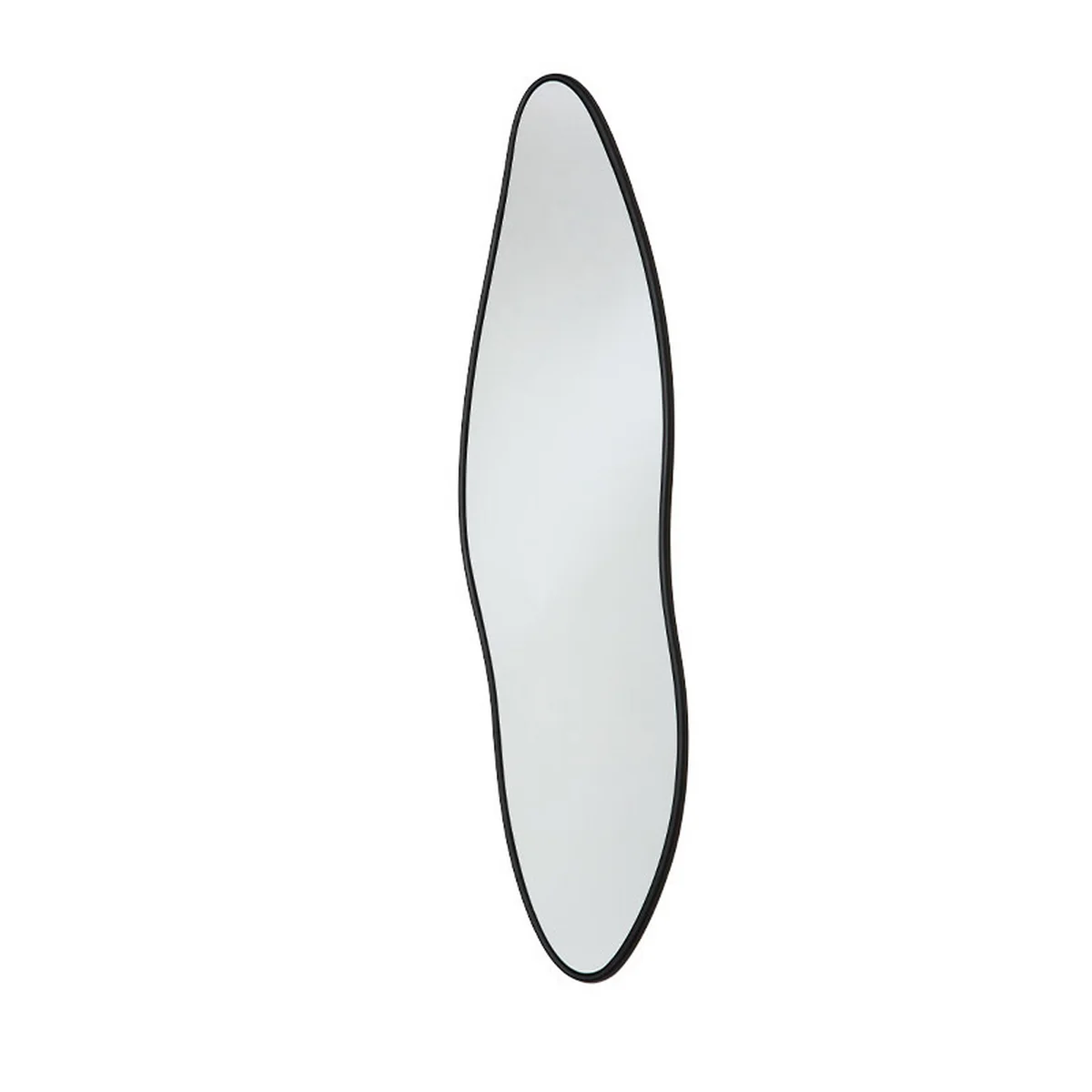 De Michigan wandspiegel is geïnspireerd op de levendige dynamiek van de grote stad. De zachte, vloeiende vormen doen denken aan gebogen rivieroevers, terwijl het zwarte metalen frame een stijlvol, industrieel contrast vormt. Het organische silhouet maakt van de spiegel een decoratief wandobject dat niet alleen functioneel is, maar ook een esthetisch hoogtepunt in de kamer - ideaal voor de gang, badkamer of woonkamer. Dankzij de beugel aan de achterkant kan de spiegel flexibel en in verschillende richtingen aan de muur worden bevestigd.