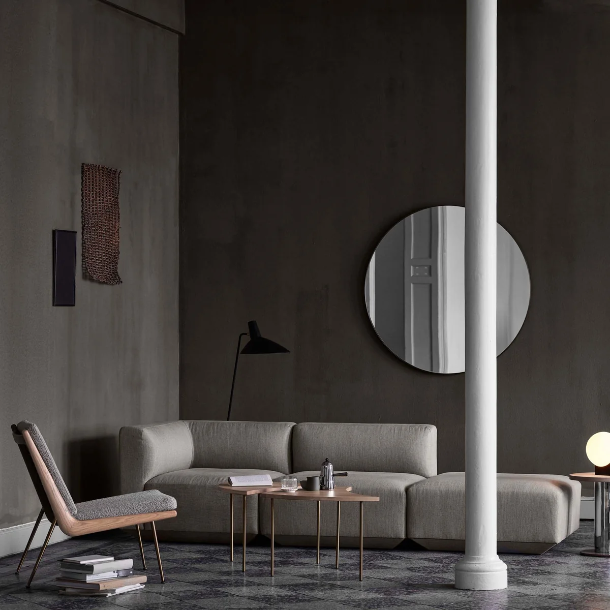De Amore Spiegel van & tradition behoort tot de Collect serie, een assortiment van zorgvuldig geselecteerde en mooie meubels en accessoires. Het is ontworpen door de ontwerpstudio Space Copenhagen, die de ronde spiegel een zeer verfijnde uitstraling gaf met behulp van een bronzen messing frame en zilverkleurig glas.