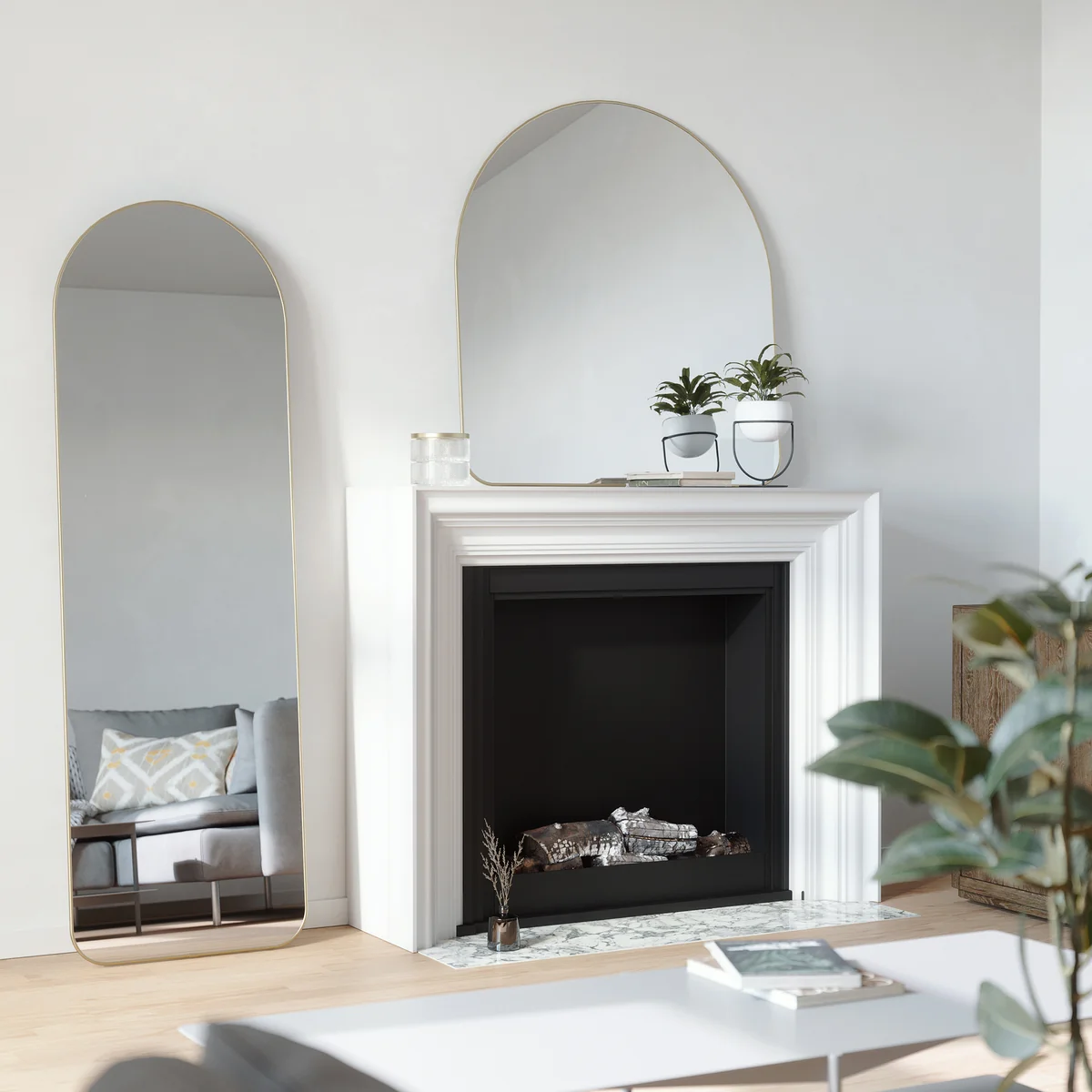 De staande spiegel maakt deel uit van de Hubba spiegelcollectie van Umbra .