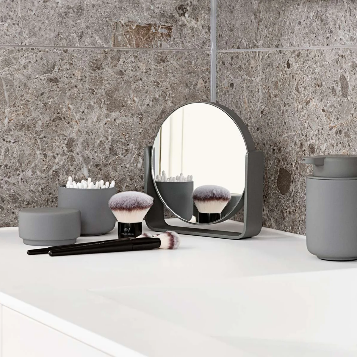 De Ume Tafelspiegel met vergroting is verkrijgbaar in verschillende kleuren, afhankelijk van je persoonlijke voorkeur. Dankzij het compacte formaat past hij gemakkelijk op de wastafel, commode of badkamerplankje. Zone Denmark De - Ume tafelspiegel is een praktisch en esthetisch accessoire dat je een helder zicht en een aangename verzorgingservaring biedt.