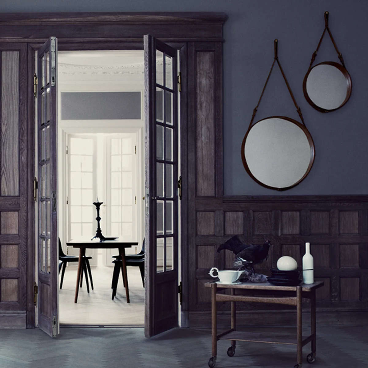De leren riemen van de Adnet De leren riemen van de spiegel zijn handgemaakt in Italië en zijn zorgvuldig bewerkt. De lengte van elke leren riem is evenredig met de diameter van de spiegel die hij omringt. Op deze manier vertegenwoordigt de Adnet spiegel een persoonlijke, individuele stijl die niet onder de indruk is van kortstondige trends.