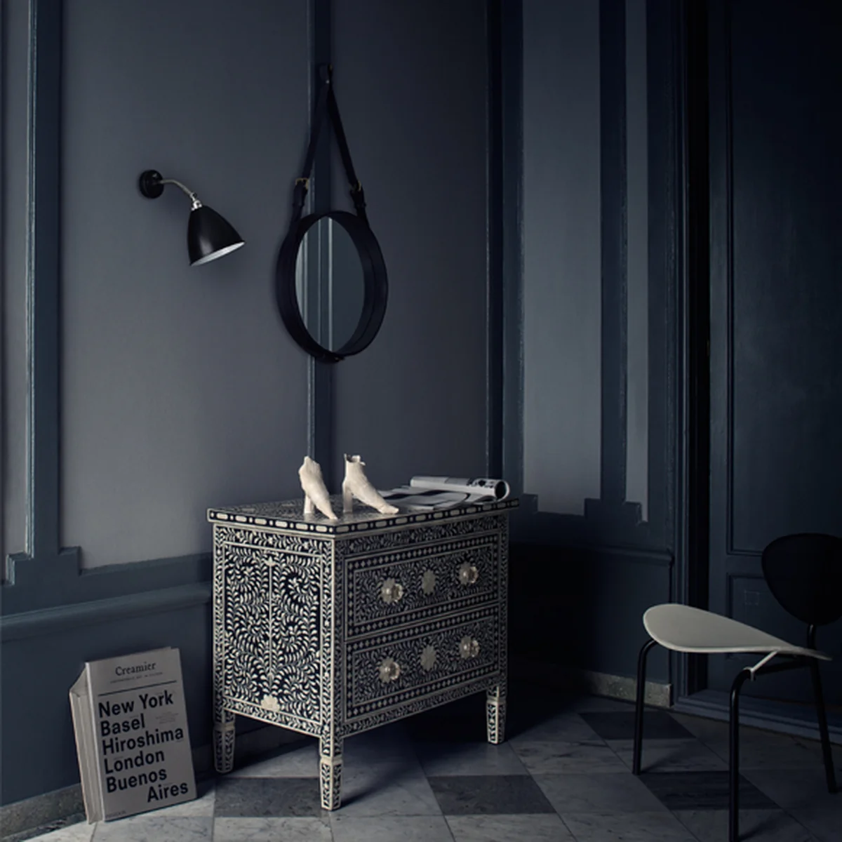 Eenvoudig en toch royaal, discreet en toch luxueus: de Adnet spiegel is de belichaming van Jacques' typische stijl. Adnet . De Franse ontwerper combineerde verschillende stijlen in de jaren 1950 om iets onmiskenbaars te creëren. De eenvoudige geometrie is de tegenpool van de gedetailleerde, bijna barok aandoende leren bekleding van de ronde spiegel. Adnet Dit contrast maakt de spiegel geschikt voor zowel moderne als klassieke huizen.