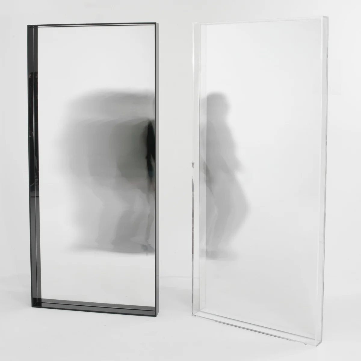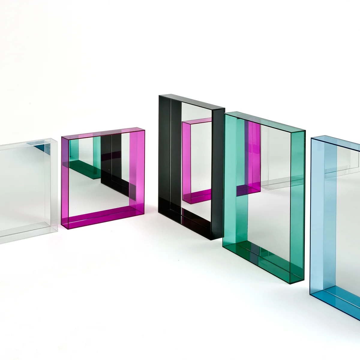 Het frame van de Only Me spiegel is gemaakt van transparante of grondig geverfde PMMA kunststof, afhankelijk van de kleur ervan. De Only Me spiegel is verkrijgbaar in alle gangbare Kartell kleuren en in verschillende maten.