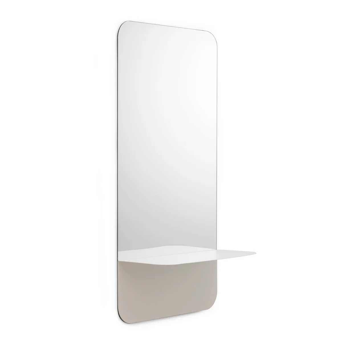 De verticale Horizon spiegel van Normann Copenhagen is ontworpen door Kaschkasch Cologne en is een wandspiegel met een geïntegreerd stalen planchet. De plank is niet alleen een visueel hoogtepunt, maar ook praktisch voor het opbergen van sleutels, accessoires of parfum.