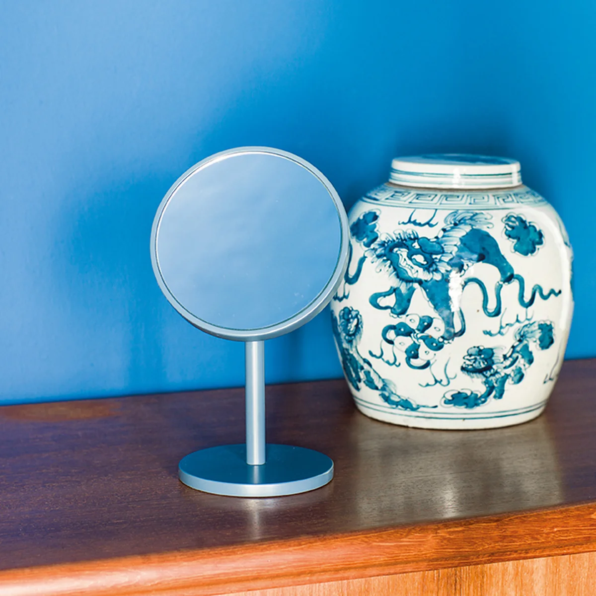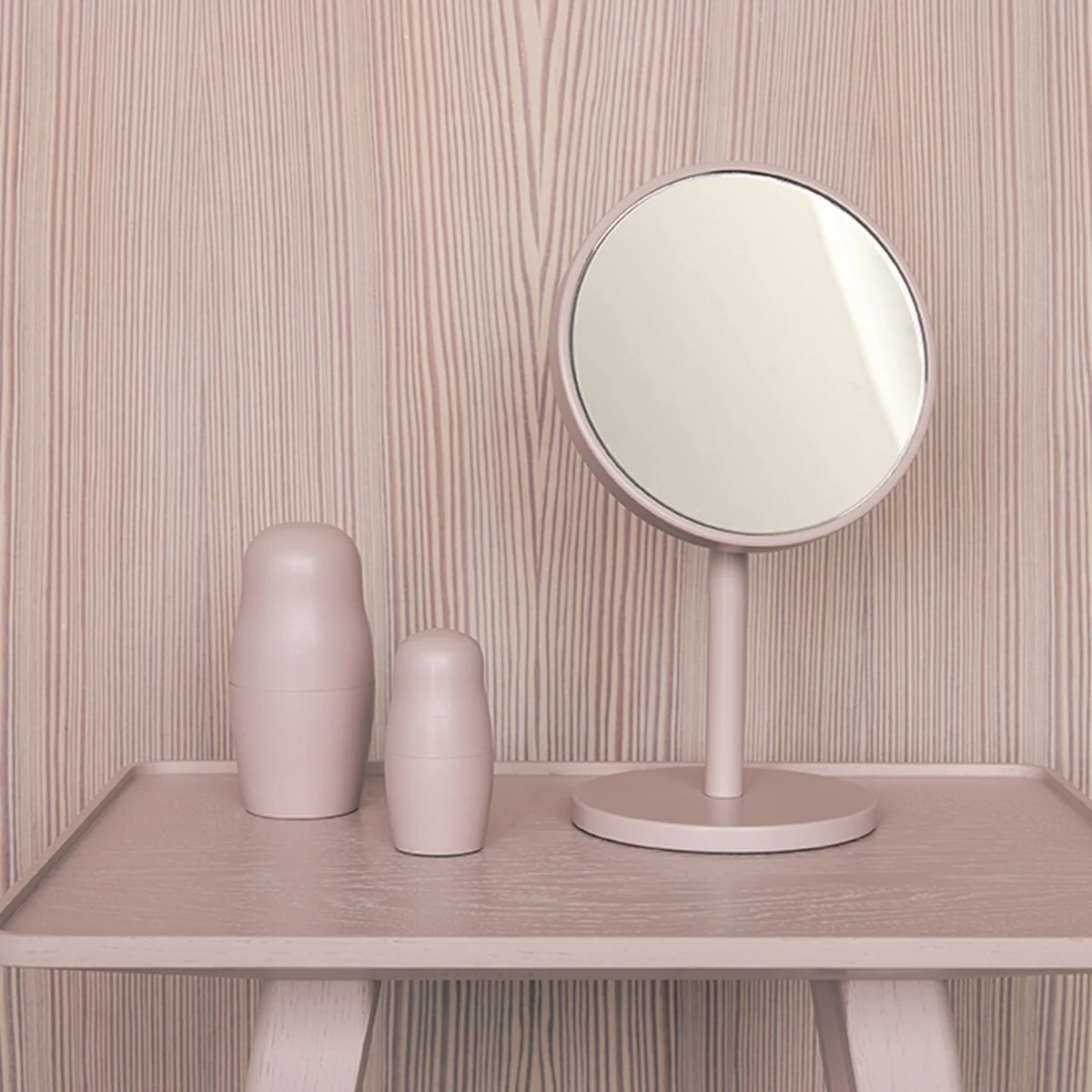 De spiegel kan eenmaal om zijn eigen as worden gedraaid en blijft altijd in positie dankzij het magnetische kogelgewricht. Verkrijgbaar in verschillende matte lakkleuren, waaronder neonkleuren - voor kleurrijke of eenvoudige accenten op de kaptafel.
