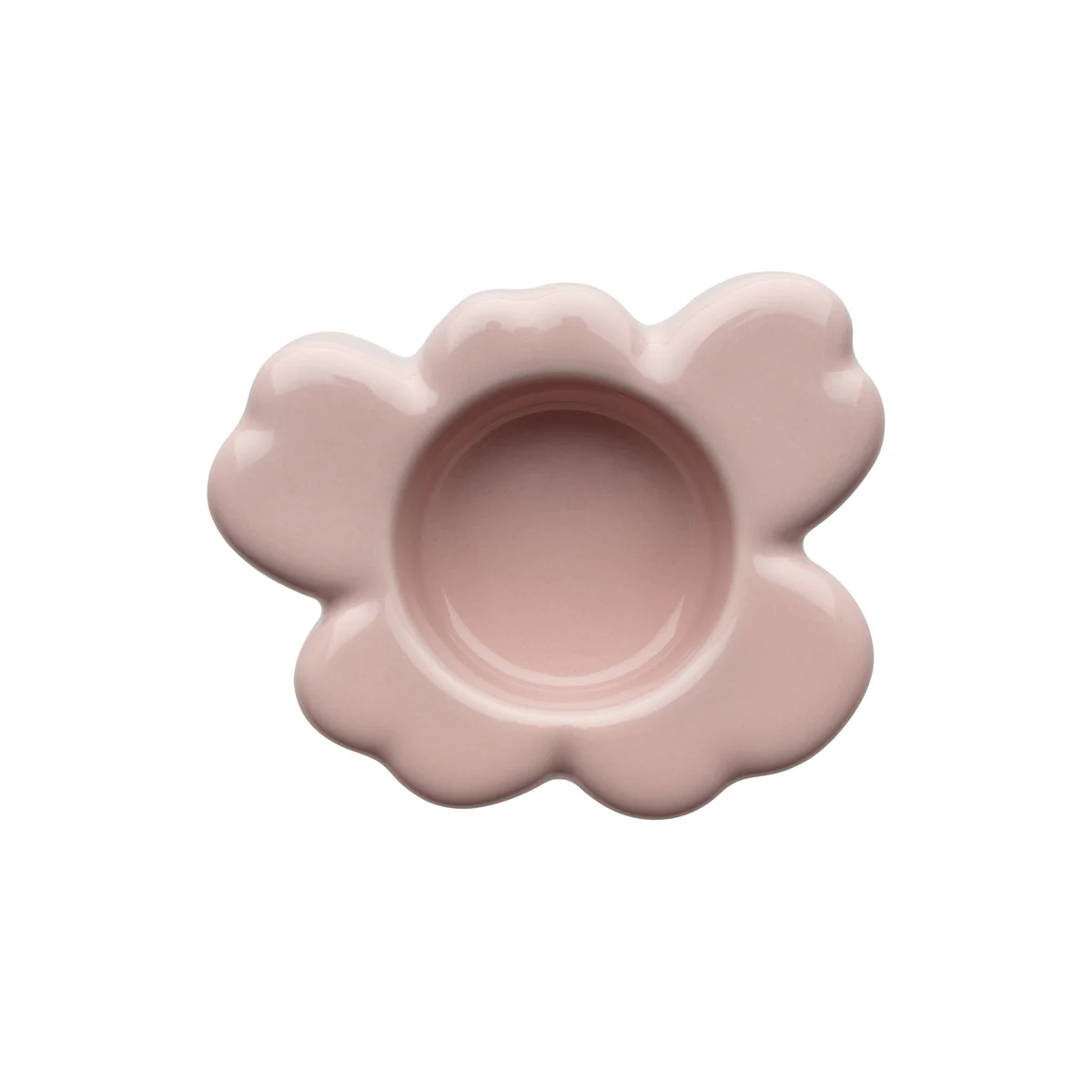 De Unikko theelichthouders van Marimekko , in de vorm van Unikko bloemen, zijn gemaakt van glas of steengoed. Het is aan te raden om deze producten met de hand af te wassen voor optimaal onderhoud.