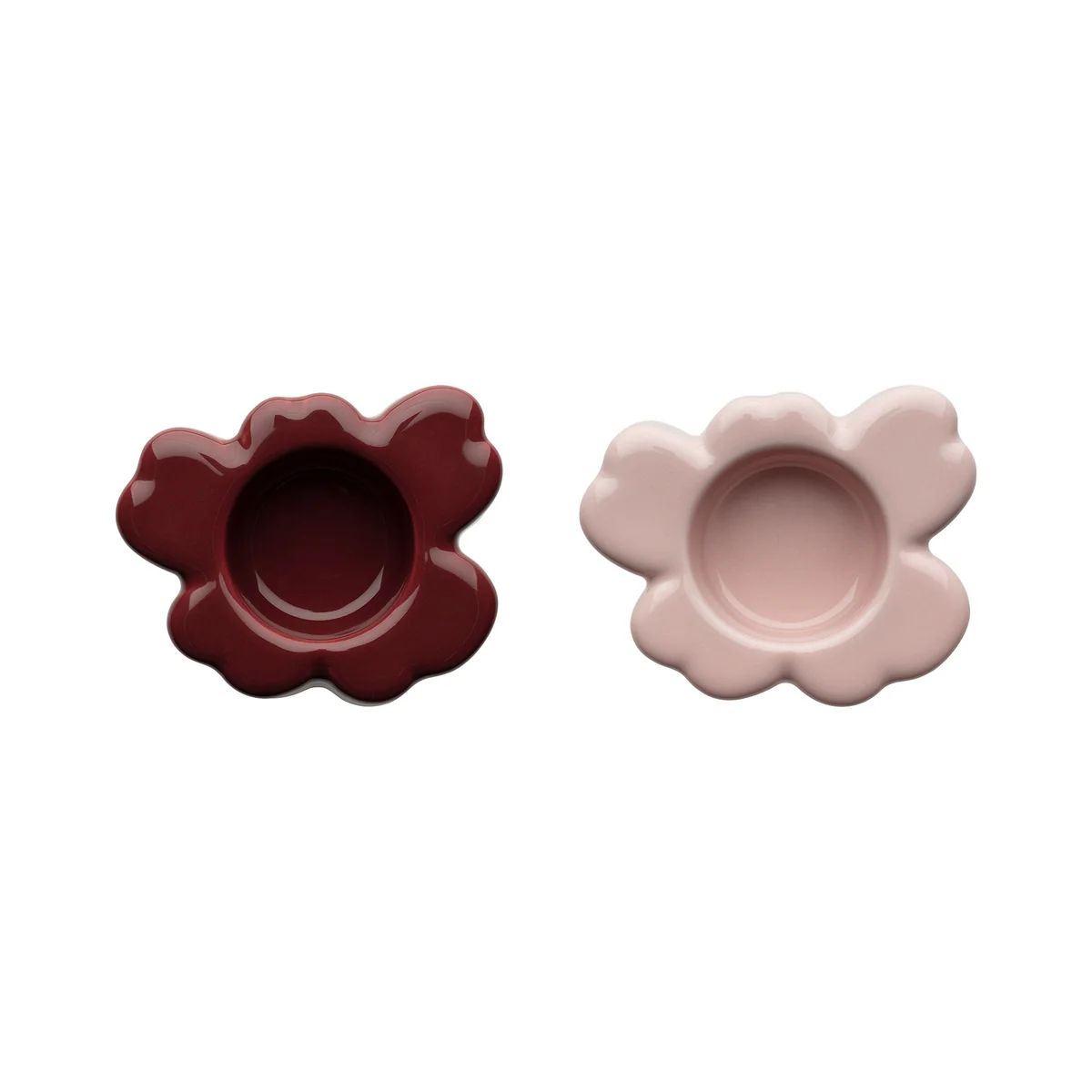 De Unikko theelichthouders van Marimekko , in de vorm van Unikko bloemen, zijn gemaakt van glas of steengoed. Het is aan te raden om deze producten met de hand af te wassen voor optimaal onderhoud.