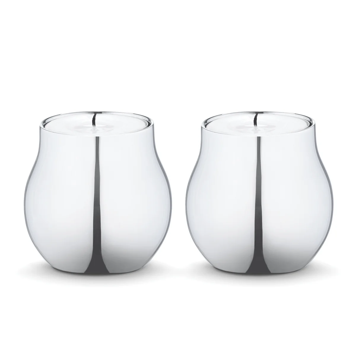 De theelichtjes passen in het omvangrijke ontwerp van de Cafu votiefkaarsenhouder en zijn daarmee in harmonie wanneer ze samen een tafel versieren, of wanneer ze gewoon een ladekast opfleuren. Het hoogglans gepolijste roestvrijstaal benadrukt het edele design, dat door de gehele Cafu-collectie van Georg Jensen loopt.