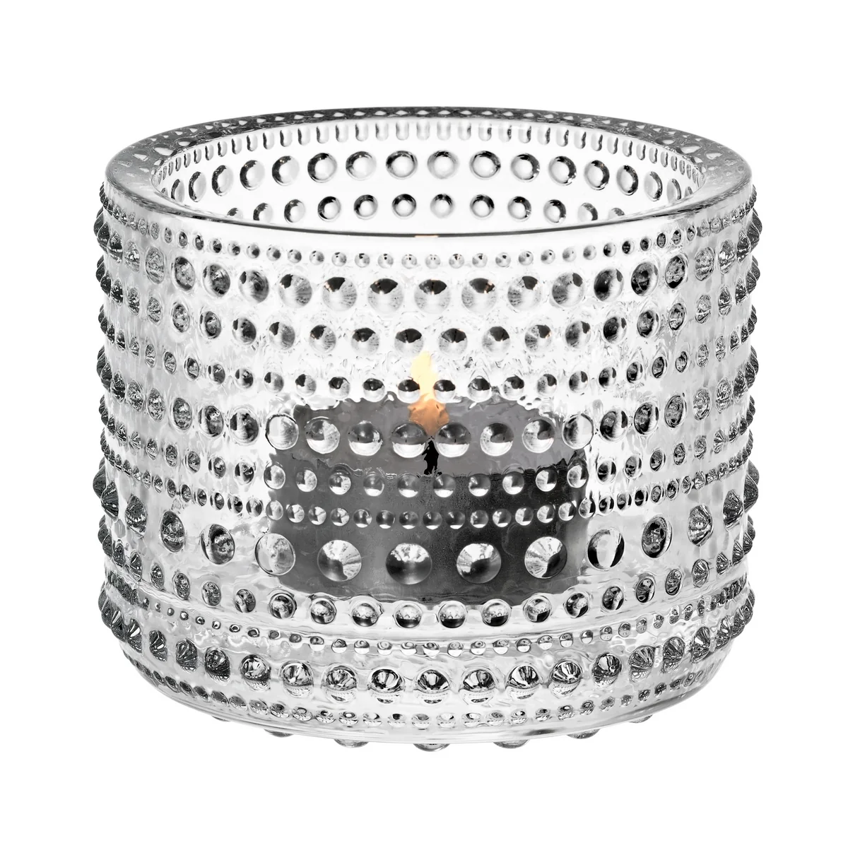 In de jaren 1960 probeerde Oiva Toikka een manier te vinden om de naden in geperst glas te verbergen. Hij kwam op het idee om kleine druppels glas op de naden te plaatsen. Zijn experiment ontwikkelde zich tot een compleet nieuw ontwerp, dat opnieuw werd uitgebracht door Iittala. De Kastehelmi Votive s van Oiva Toikka zijn verkrijgbaar in vele sfeervolle kleuren.