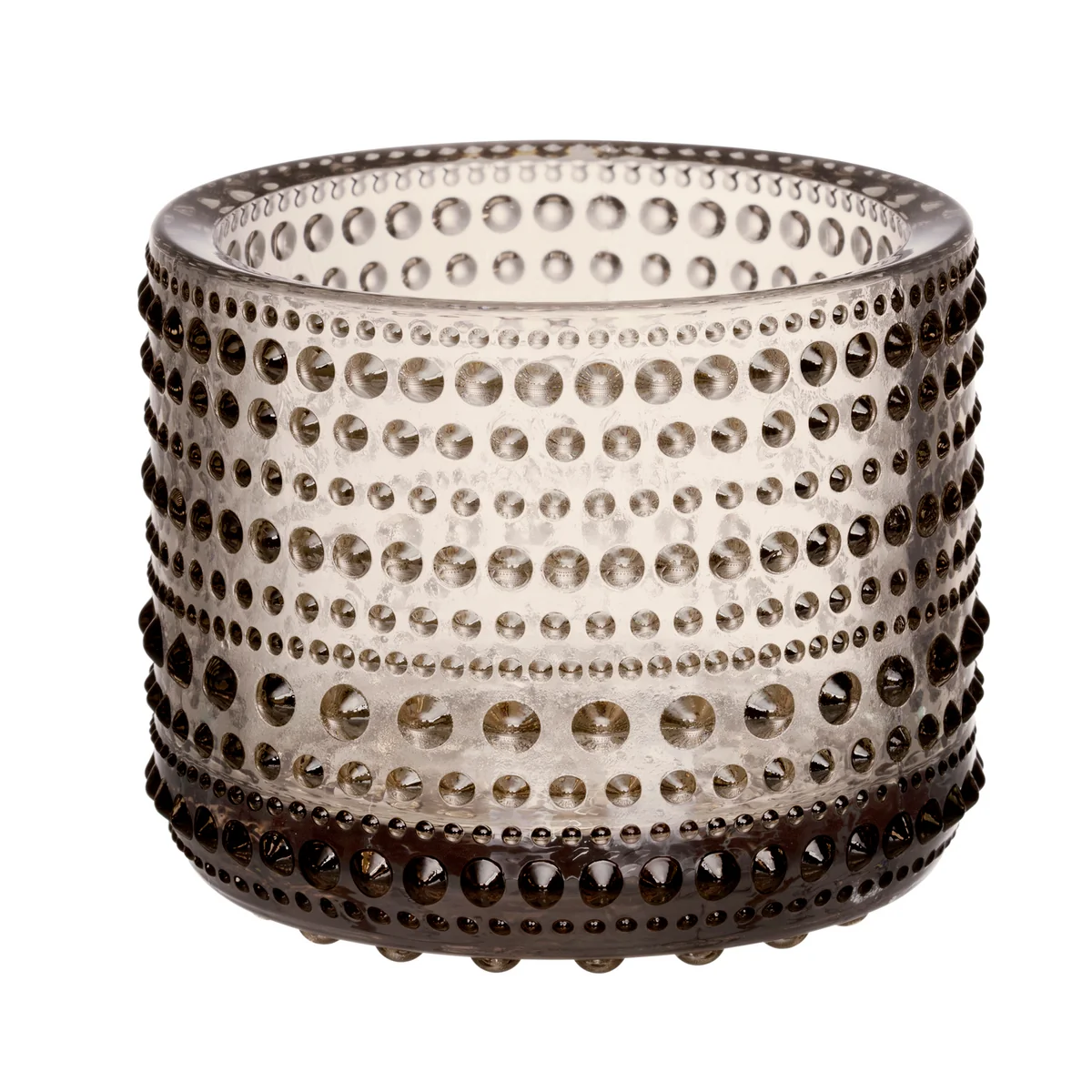 In de jaren 1960 probeerde Oiva Toikka een manier te vinden om de naden in geperst glas te verbergen. Hij kwam op het idee om kleine druppels glas op de naden te plaatsen. Zijn experiment ontwikkelde zich tot een compleet nieuw ontwerp, dat opnieuw werd uitgebracht door Iittala. De Kastehelmi Votive s van Oiva Toikka zijn verkrijgbaar in vele sfeervolle kleuren.