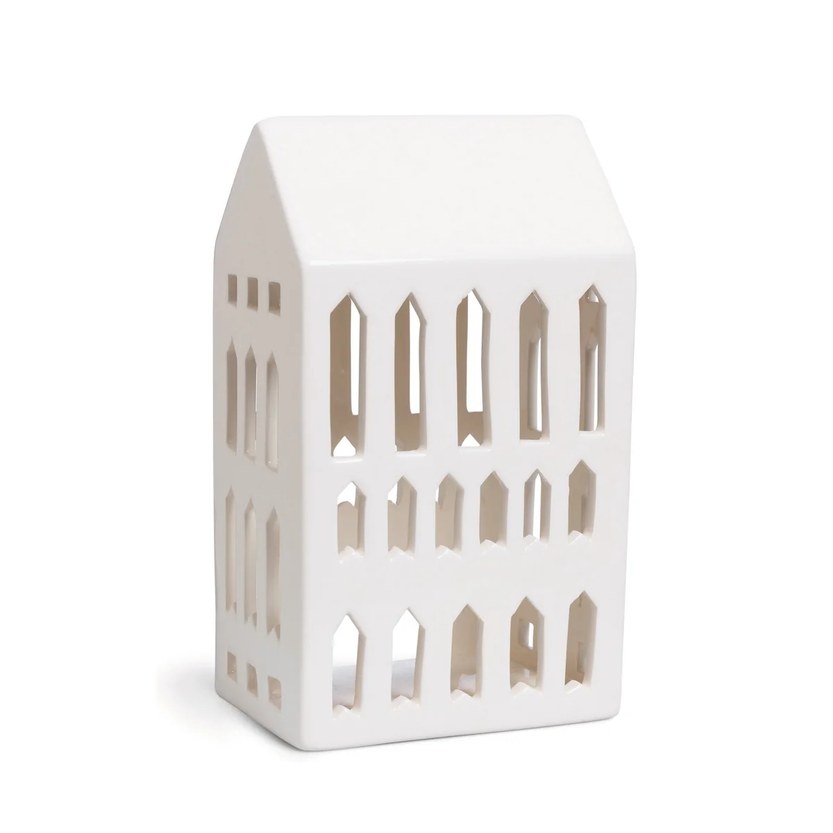 De Urbania theelichthuisjes van Kähler Design zijn theelichthouders van keramiek met handgesneden vensters waardoor een gezellig kaarslicht schijnt. In verschillende architectonische vormen zijn de theelichthouders van Mette Bache en Barbara Bendix Becker een bijzondere blikvanger op elke vensterbank.