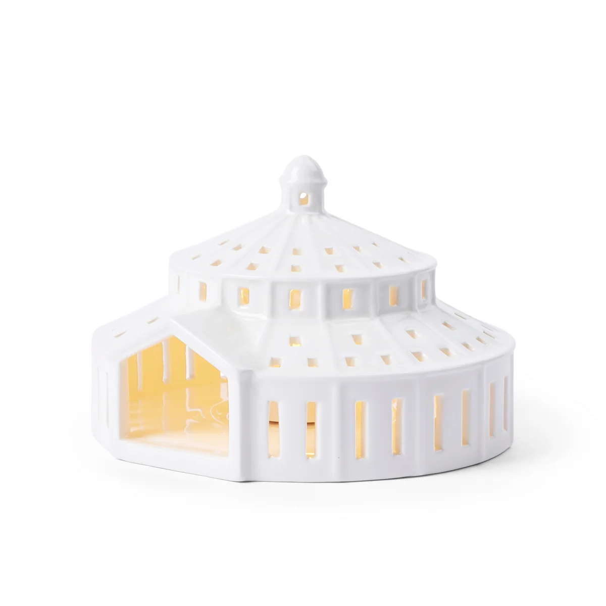 De vorm van de lichthuisjes van Kähler Design is geïnspireerd op stedelijke of sacrale gebouwen zoals traditionele Romeinse basilieken, moderne hoogbouw of functionalistische architectuur.