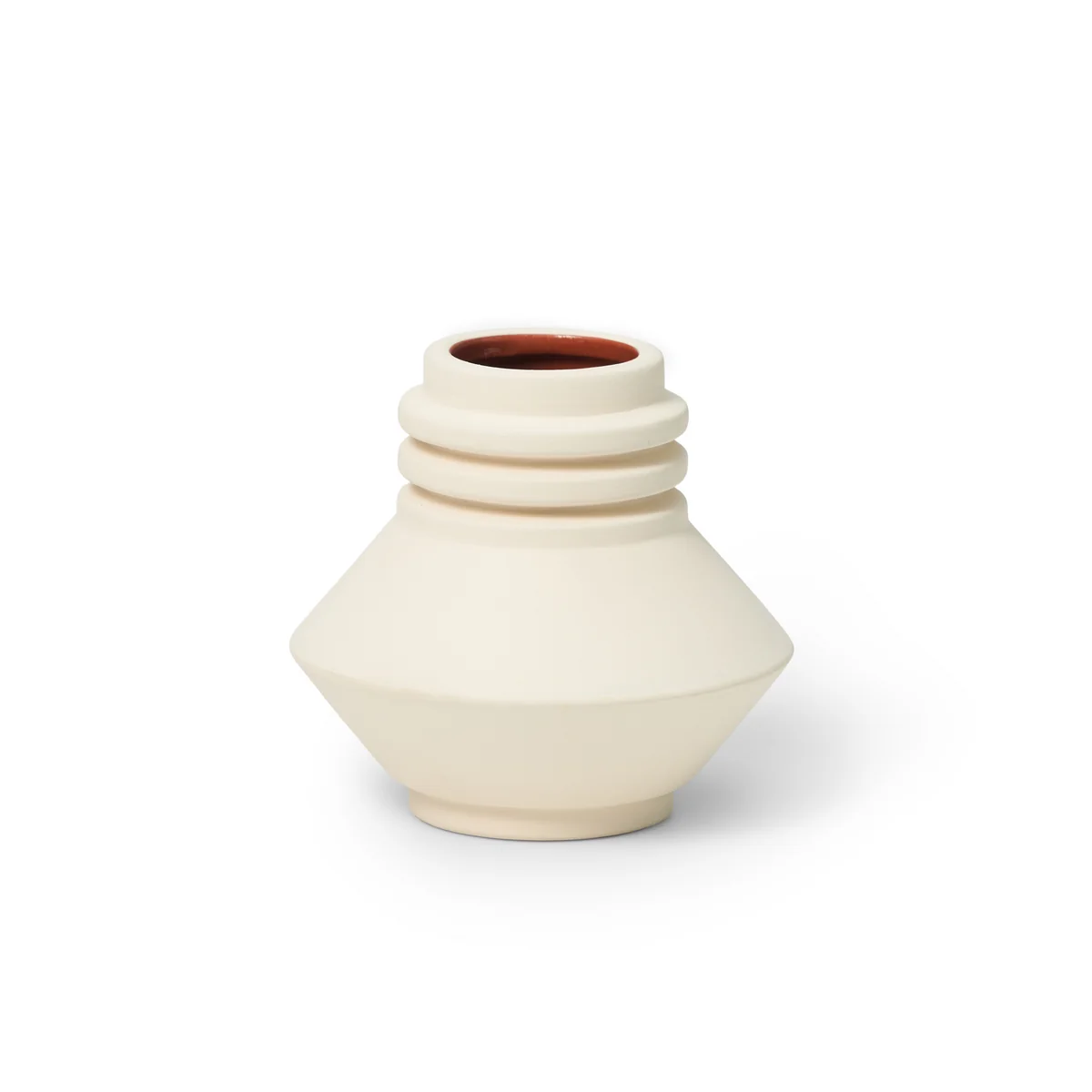 De Strata vaas maakt indruk met zijn eenvoudige elegantie en fascinerende structuur, die doet denken aan geologische lagen. De vaas is gemaakt van hoogwaardig materiaal en heeft een glad, mat oppervlak dat de sculpturale vorm perfect benadrukt. Elke laag is zorgvuldig vervaardigd om de schoonheid en complexiteit van de natuur te weerspiegelen.