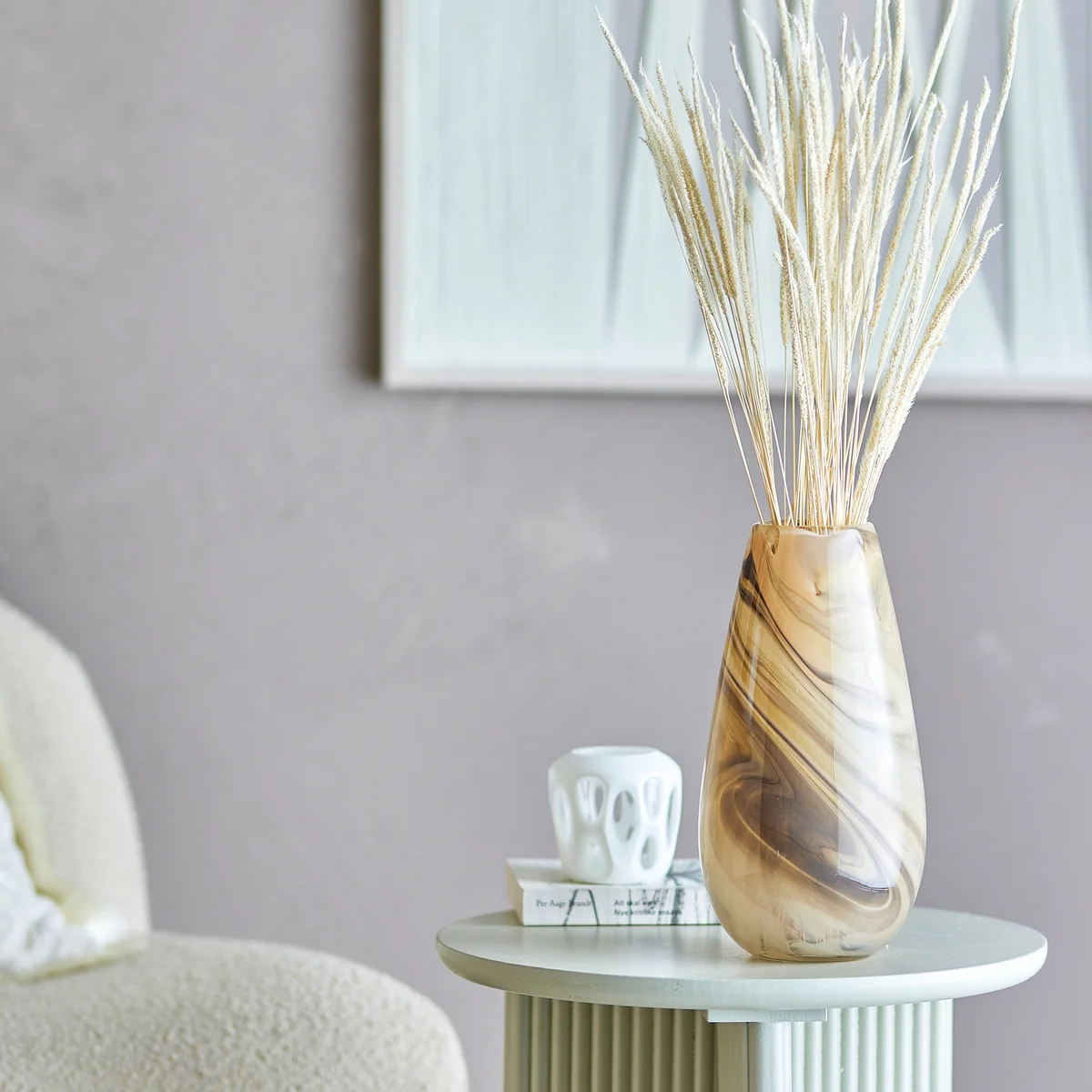 De Algar vaas van Bloomingville maakt indruk met zijn elegante ontwerp en vakmanschap. Hij is gemaakt van massief, mondgeblazen glas in warme bruintinten en heeft een fijn gedraaid patroon dat het glas diepte en dynamiek geeft. Door de handgemaakte afwerking heeft elke vaas individuele variaties in kleur en vorm - waardoor hij echt uniek is.