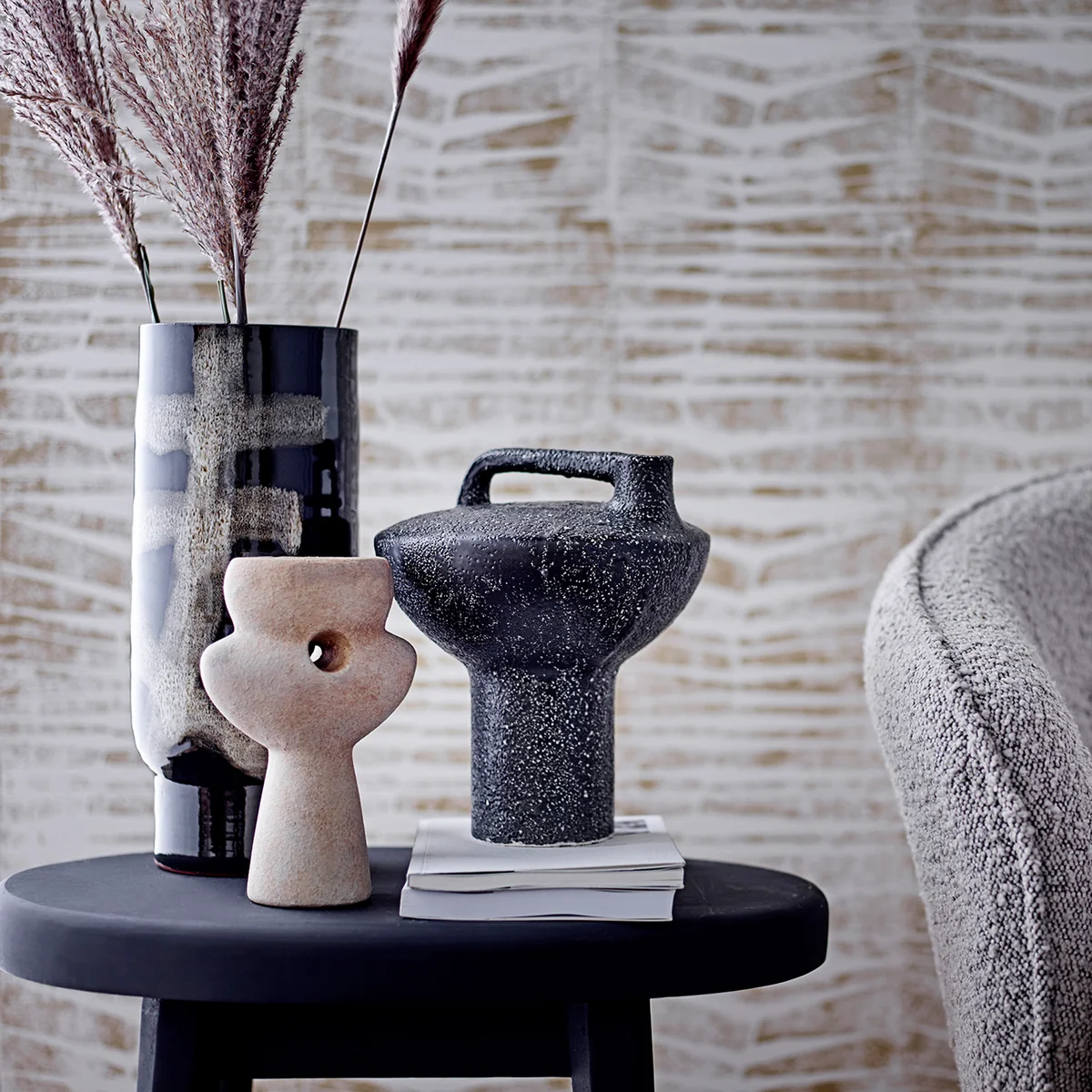 De Vefa vaas van Bloomingville is een decoratieve vaas die hoog genoeg is om op de grond te zetten en laag genoeg om ook op tafel, dressoir, plank of vensterbank te plaatsen. De vaas is gemaakt van terracotta met een zwart-wit gestreept motief.