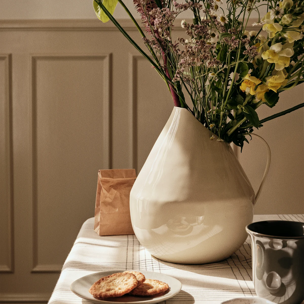De bolvormige Rosario Broste Copenhagen vaas van is een charmante blikvanger met een unieke, rustieke elegantie. De vaas is gemaakt van hoogwaardig email en maakt indruk met zijn organische vorm en praktische handvat, dat hem een speciaal karakter geeft.