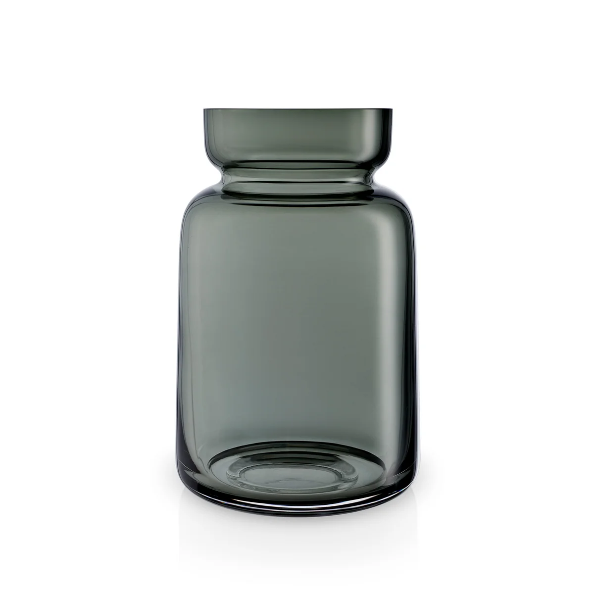 De Silhouette glazen vaas van Eva Solo overtuigt door het gerookte glas en de vernauwing aan de hals van de vaas. Enkele bloemen, weelderige boeketten en ook plantenblaadjes staan bijzonder mooi in beeld in de vaas.