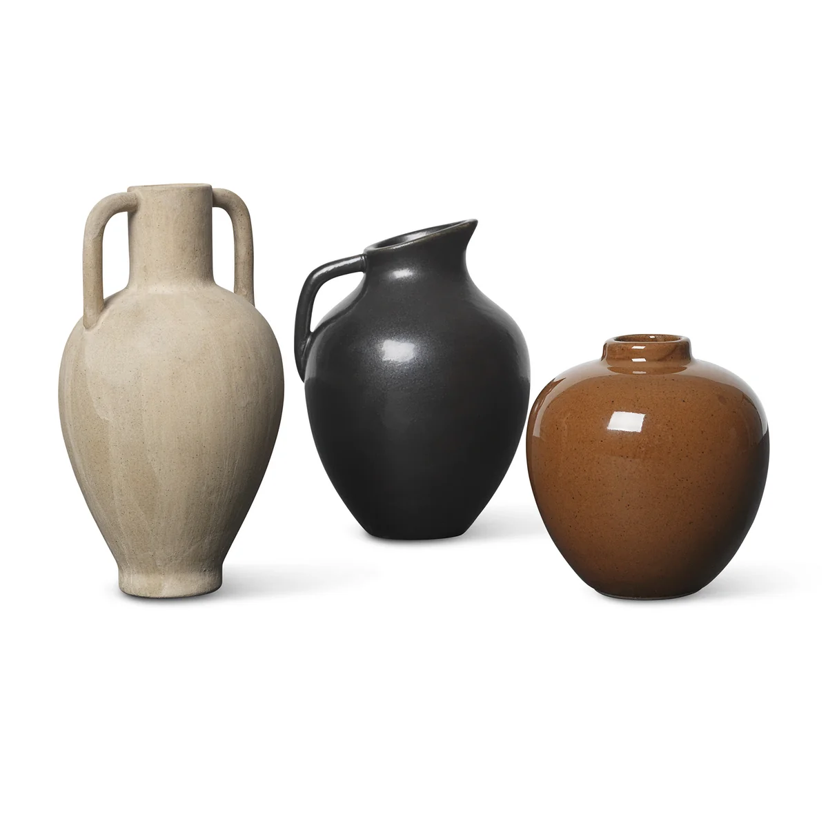 De delicate Ary Mini vazen van geglazuurd porselein doen denken aan antieke Griekse vazen en zijn verkrijgbaar in een selectie van opvallende vormen. Variërend in grootte, kleur en glazuur, heeft elk zijn eigen persoonlijkheid en unieke uitdrukking. De vazen kunnen worden gebruikt in een klein, decoratief stilleven met andere vazen uit de serie. Ze springen ook in het oog als ze alleen worden gebruikt, versierd met verse bloemen of droogbloemen met één steel.