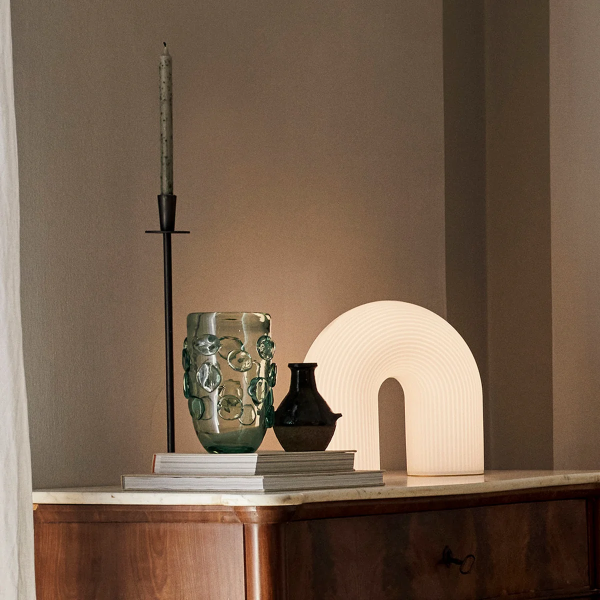 Met zijn kunstig ongelijke, grove glazen stippen, die afzonderlijk door een vakman zijn geplaatst, heeft de Lump vaas een onmiskenbare, artistieke uitdrukking. Mondgeblazen en handgemaakt van gerecycled glas, elke vaas is uniek en toont perfect het vakmanschap dat in zijn creatie ging. Gebruik de Lump vaas om uw favoriete seizoensbloemen of -takken in te zetten, of laat hem helemaal voor zichzelf staan.