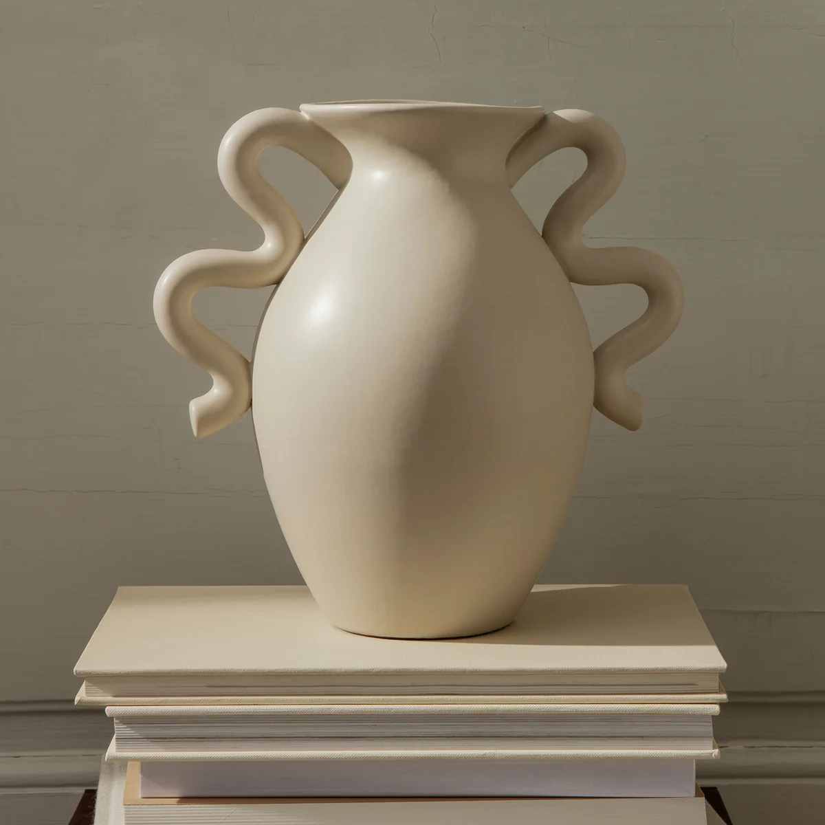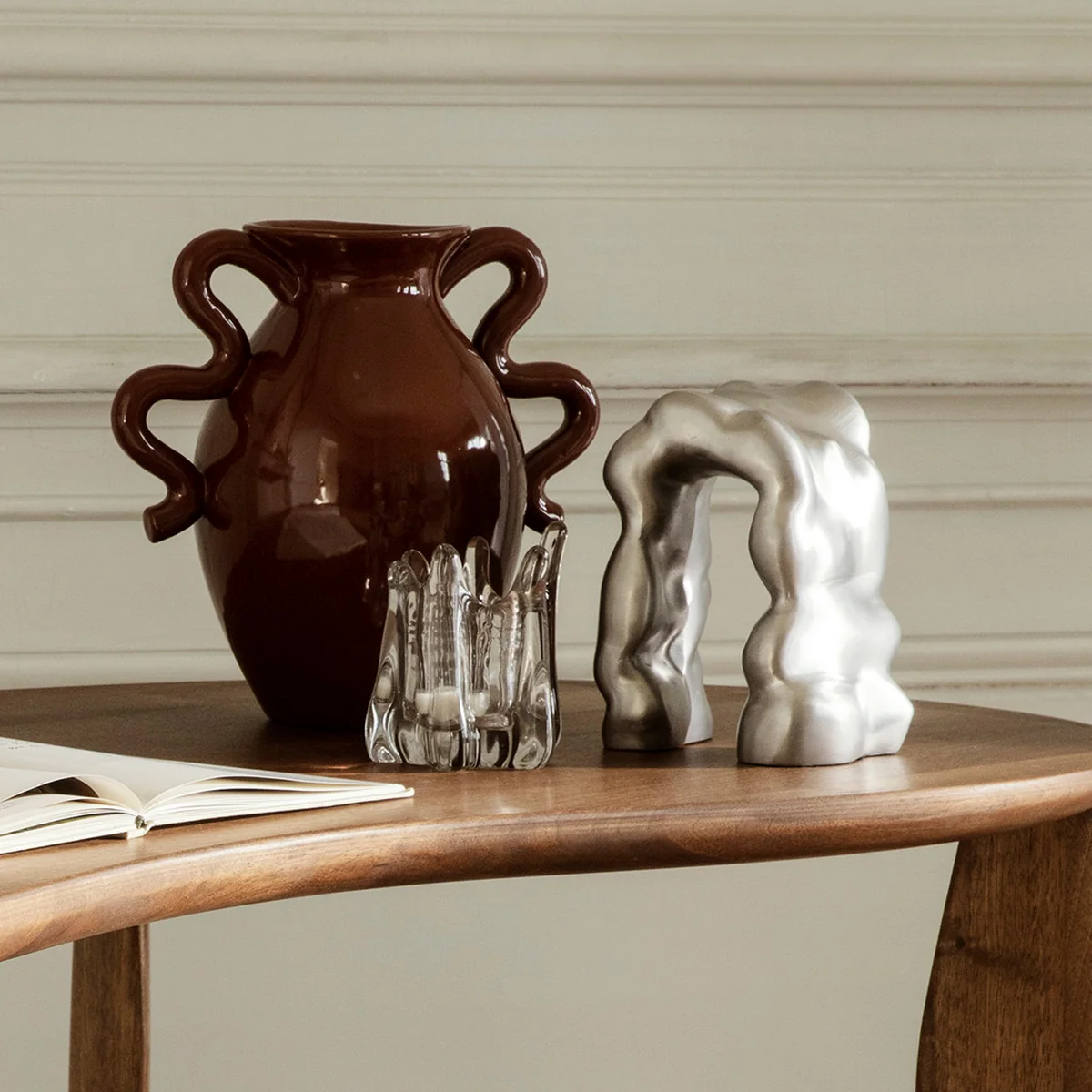 De Verso De bloemenvaas van Ferm Living doet denken aan de klassieke en traditionele vormen van keramiek. De onregelmatige en vrouwelijke vorm is versierd met kunstig gebogen handgrepen. Zij geven de tijdloze vorm en de donkere kleur een moderne toets en creëren zo een gevarieerd decoratief element dat op vele manieren kan worden gebruikt. Gecombineerd met uw favoriete bloemen, kan de Verso De bloemenvaas siert zowel eet- en bijzettafels als boekenplanken of ladekasten. De bloemenvaas kan ook worden versierd met kunstbloemen of als losstaand statement in de woonkamer worden geplaatst.
