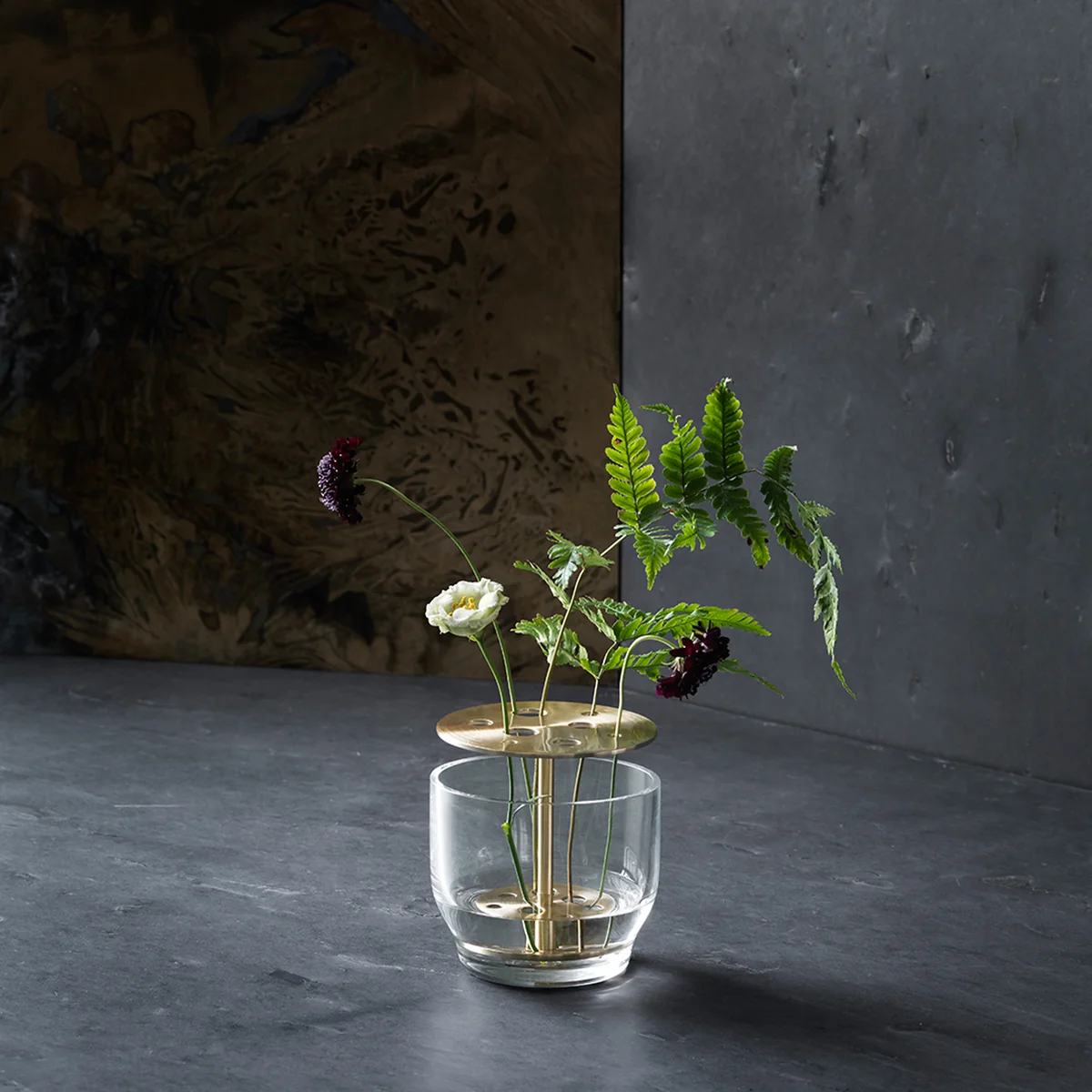 Met de geperforeerde plaat van massief messing of roestvrij staal die de glazen schaal complementeert, kunt u stijlvolle bloemen, struiken of grassen schikken in een bloemstuk.