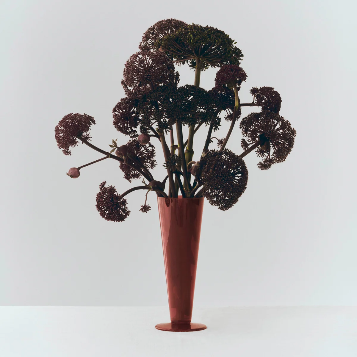 De Conical vaas van HAY maakt indruk met zijn heldere silhouet met licht aflopende zijkanten en een fijn afgestemde, tweekleurige lakafwerking. De vaas is gemaakt van soda lime glas en met de hand beschilderd, waardoor hoogwaardig vakmanschap wordt gecombineerd met moderne terughoudendheid. De conische vorm benadrukt effectief individuele stengels, los geplukte wilde bloemen of minimalistische bloemarrangementen. Dankzij de verschillende maten en kleuren kan de vaas op verschillende manieren worden gebruikt - als een solitair of in een combinatie van verschillende stukken.