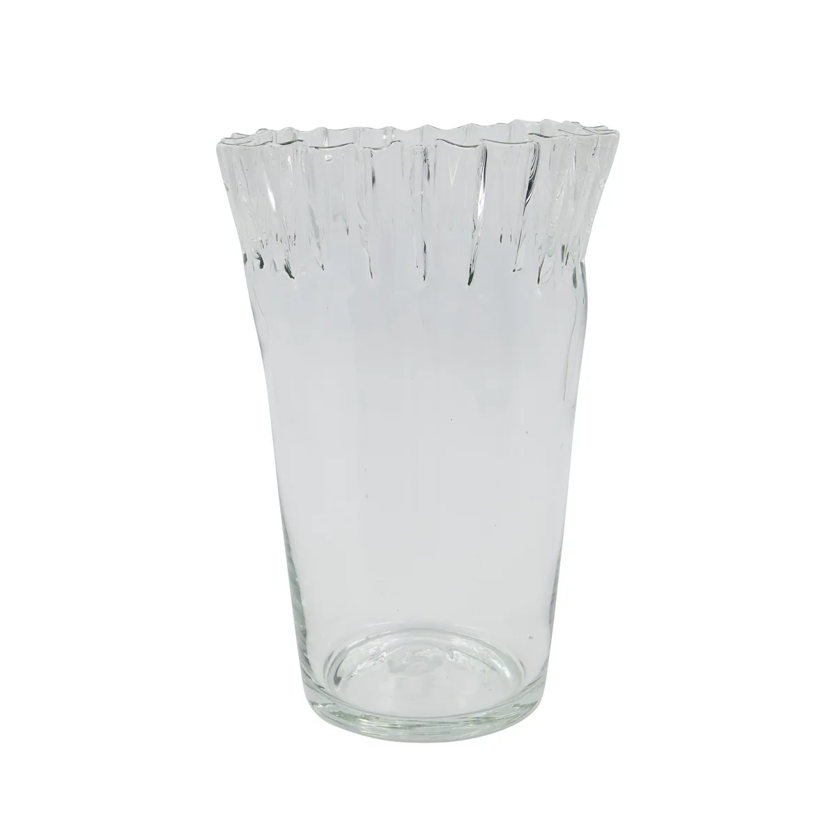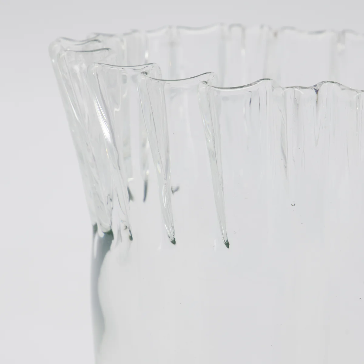 De Fold vaas combineert handgemaakt, mondgeblazen glas met een tijdloos ontwerp. Fijne glazen plooien aan de bovenrand maken het gemakkelijk om bloemen te schikken en benadrukken moderne woonconcepten met subtiele verfijning. Een veelzijdig accessoire dat je woonruimte stijlvol verrijkt.