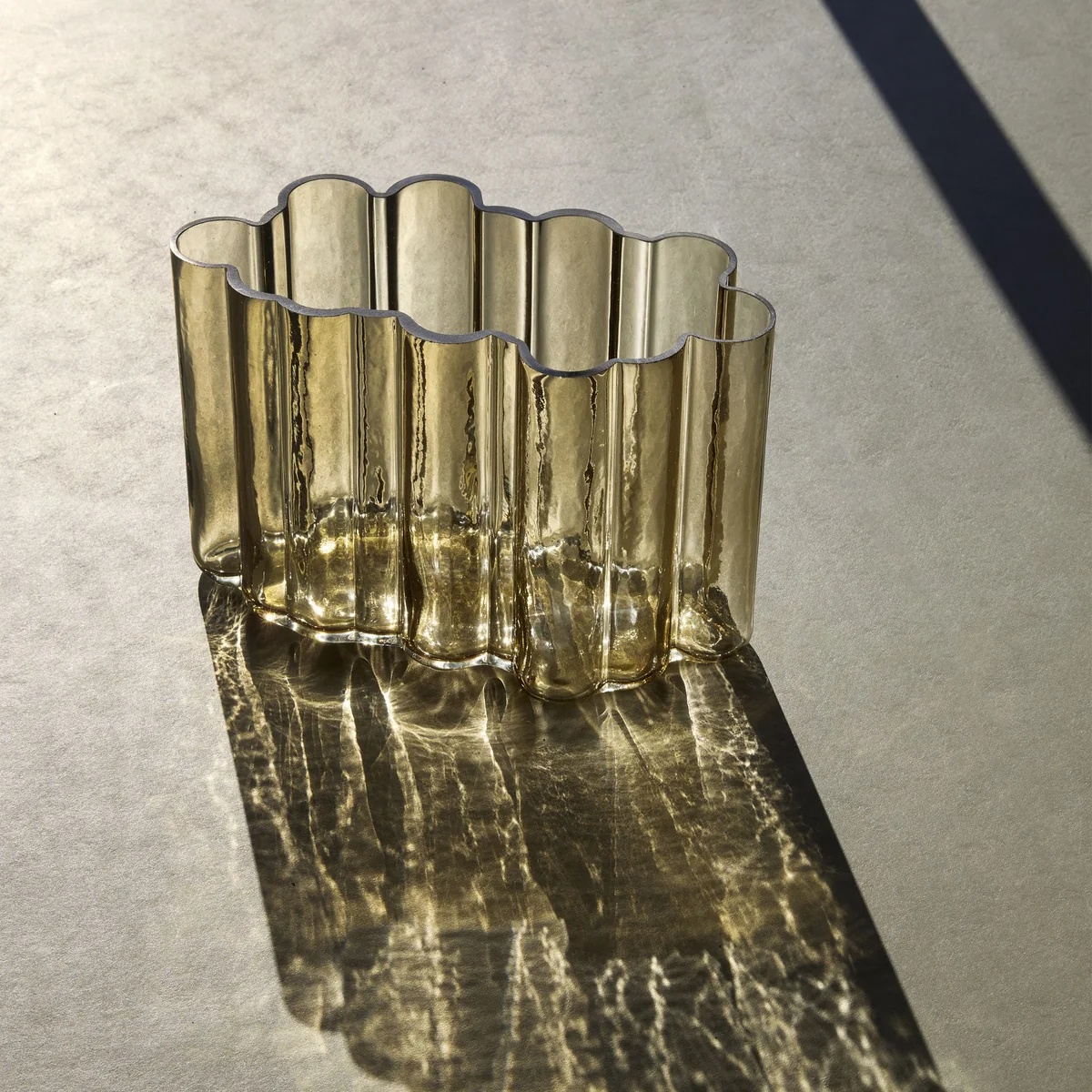 De Umber vaas van het Deense label Hübsch Interior inspireert met zijn sculpturaal design. De slanke vaas is gemaakt van gestructureerd, amberkleurig glas. Umber Hij is zeer geschikt voor vensterbanken, ladekasten of planken. De vaas kan zowel afzonderlijk worden geplaatst als worden gecombineerd met verse of gedroogde bloemen.