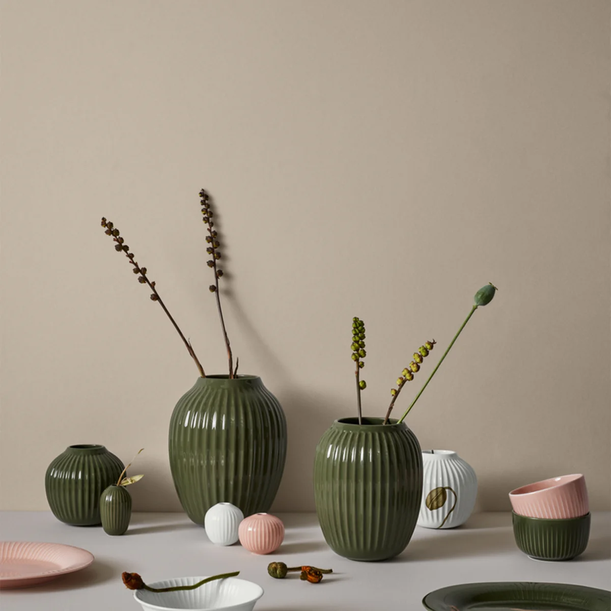De indrukwekkende vazen van Kähler Design met het karakteristieke groefpatroon behoren tot de serie ontworpen door Hans-Christian Bauer. Hammershøi serie ontworpen door Hans-Christian Bauer. Voor de vazen en de hele serie liet Bauer zich inspireren door de volumineuze vazen van Svend Hammershøi vazen, die hij rond 1900 in de Kähler werkplaats maakte.