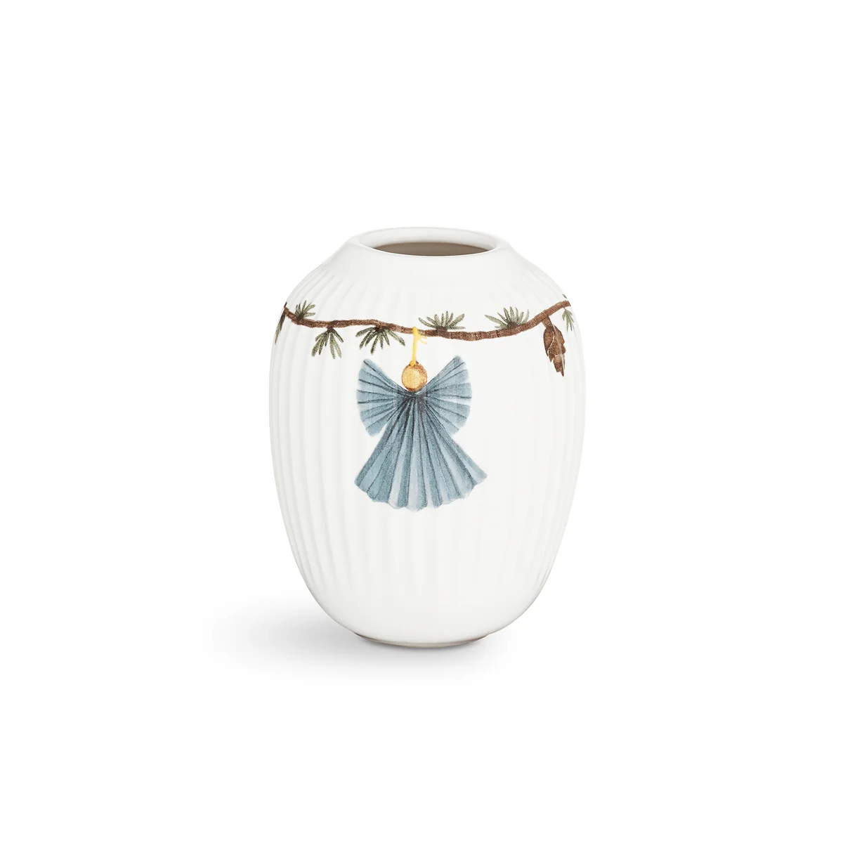 De Hammershøi collectie van Kähler Design verwelkomt Kerstmis met een reeks nieuwe illustraties voor geselecteerde elementen op het populaire kerstservies. Naast de eettafel omvat het echter ook decoratieve producten die de sfeer ook na de eettafel in stand houden. Filigraan en gedetailleerde kerstmotieven sieren deze elegante vaas met een geribbeld oppervlak. Het ontwerp komt uit het atelier van de kunstenares Rikke Jacobsen, die met haar illustraties kleine verhaaltjes vertelt.