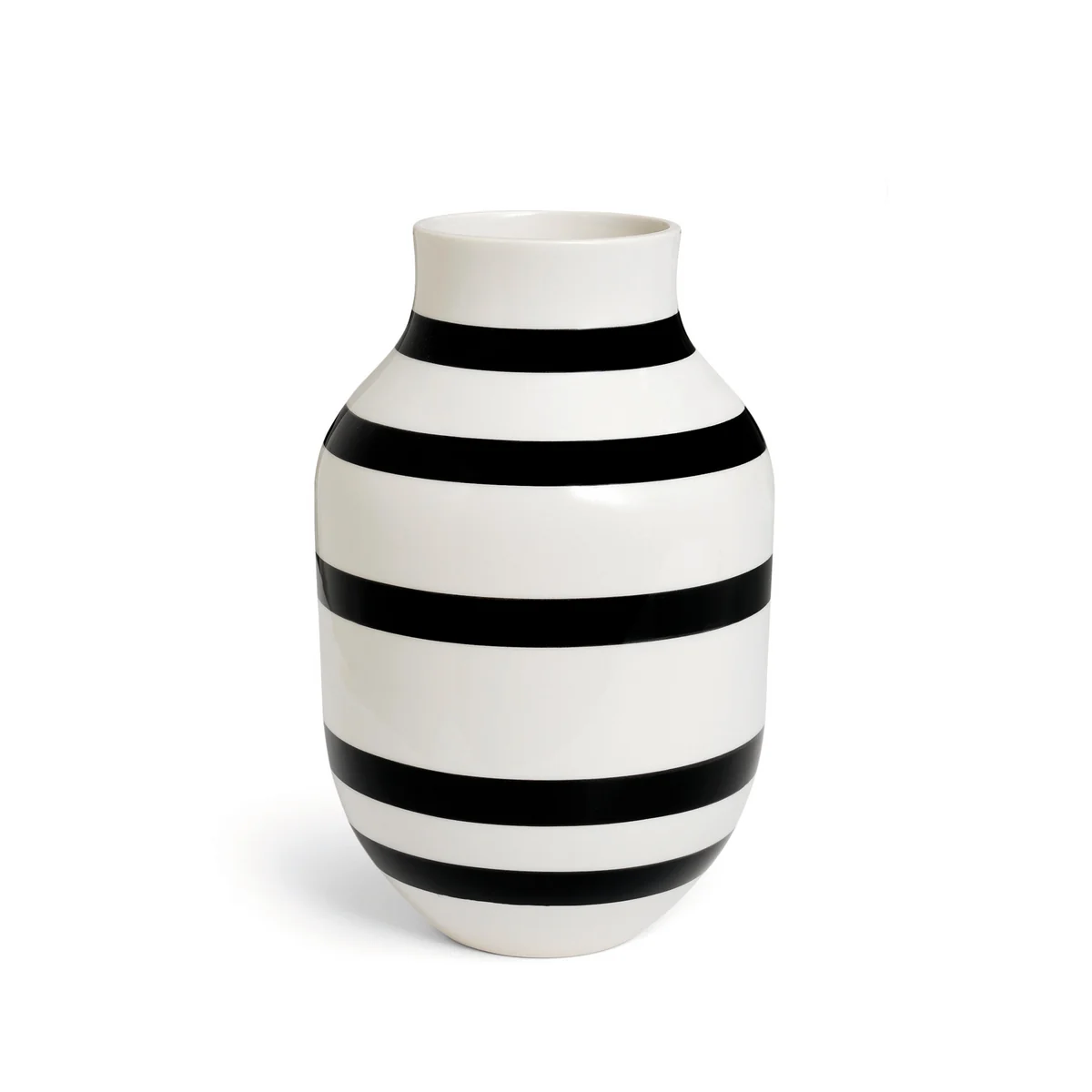 Een onmiskenbaar streepdesign onderscheidt de Omaggio vaas van Kähler Design . De combinatie van elegante strepen en een zachte vorm met zachte rondingen brengt een levendige dynamiek in elke kamer.