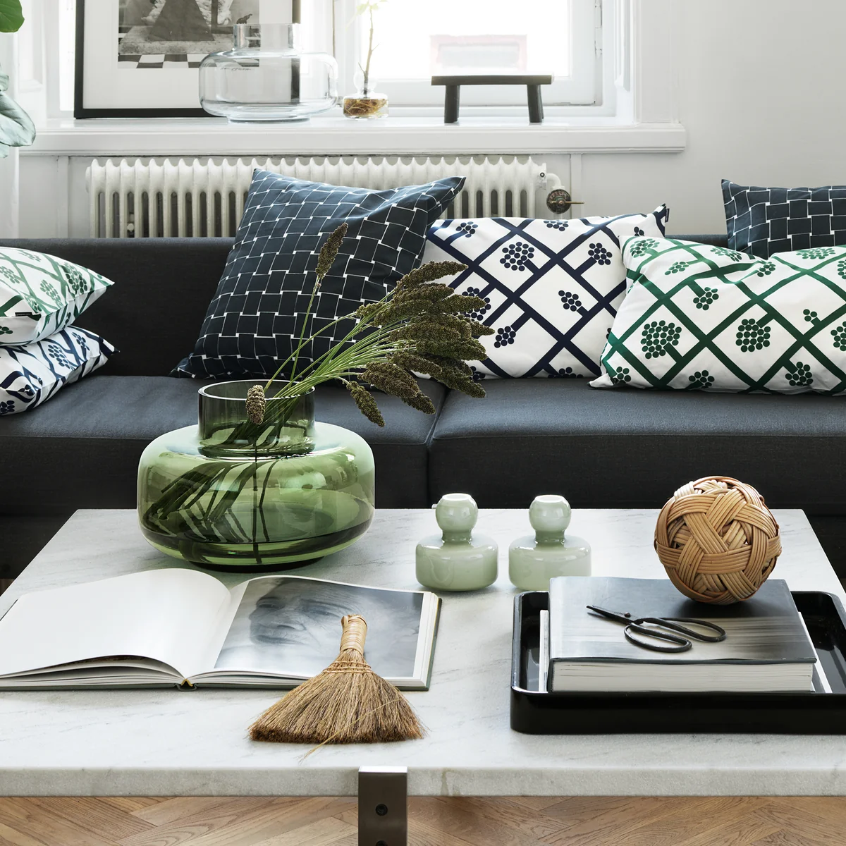 De Urna Vase Marimekko van maakt indruk met zijn ongewoon volumineuze lichaam en grote opening, die ideaal is voor het presenteren van een uitbundig boeket bloemen. De vaas is ontworpen door Carina Seth-Andersson.